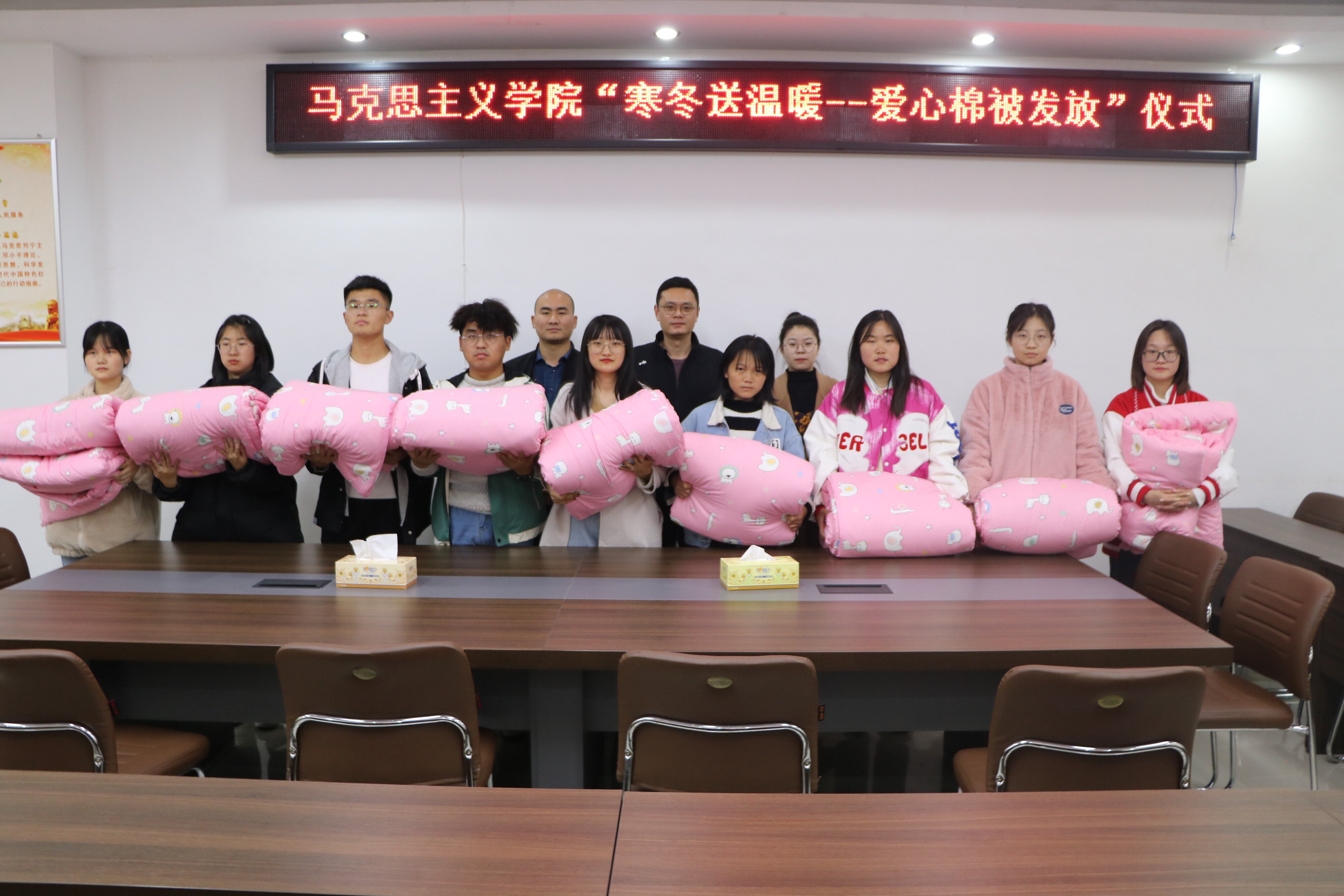 寒冬将至,温暖不止。11月26日下午,sjb世俱杯网站在社科楼323会议室举行爱心棉被发放仪式。世俱杯官网党委副书记黄煌、班主任高小佳、周文豪及受资助学生共同参加此次仪式。仪式由黄煌主持。