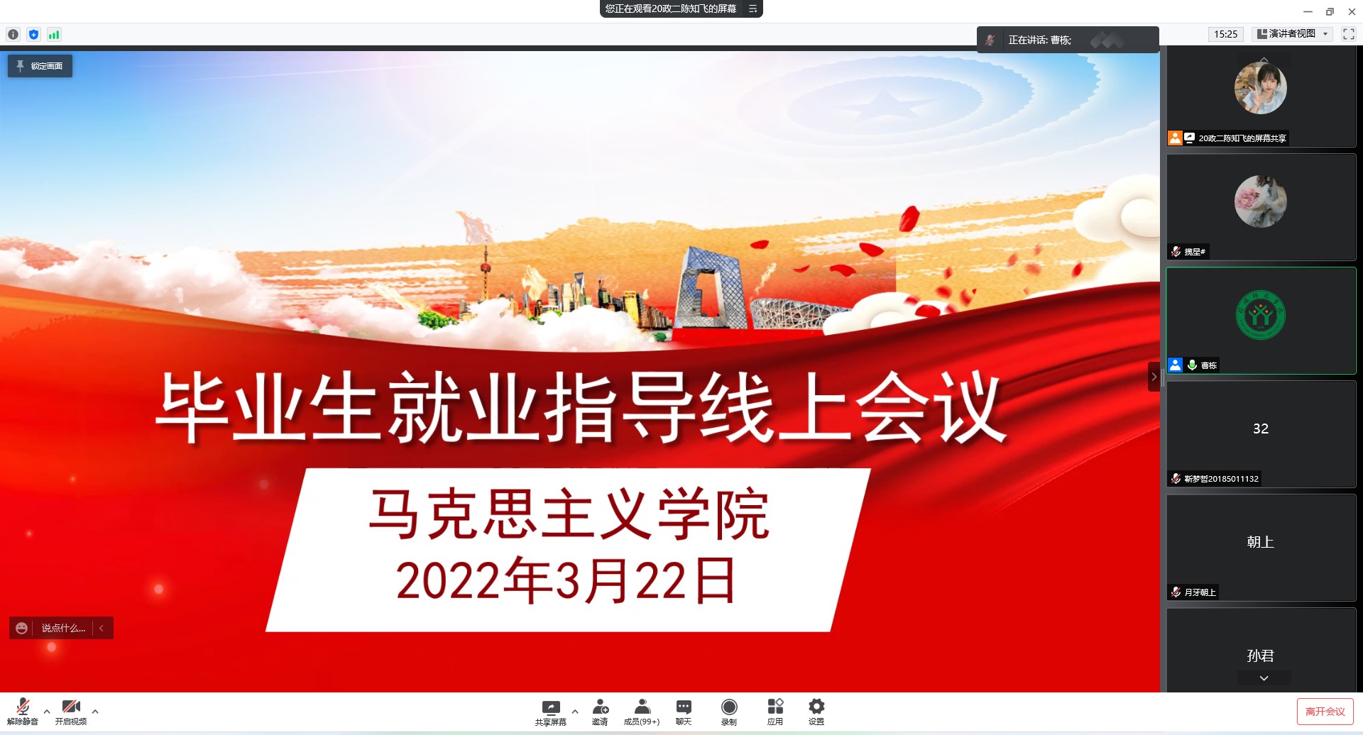 3月22日上午,sjb世俱杯网站在腾讯会议上召开毕业生就业指导线上会议。世俱杯官网团委书记曹栋、2018级辅导员张恬恬及2018级全体学生共同参加本次会议,会议由曹栋主持。