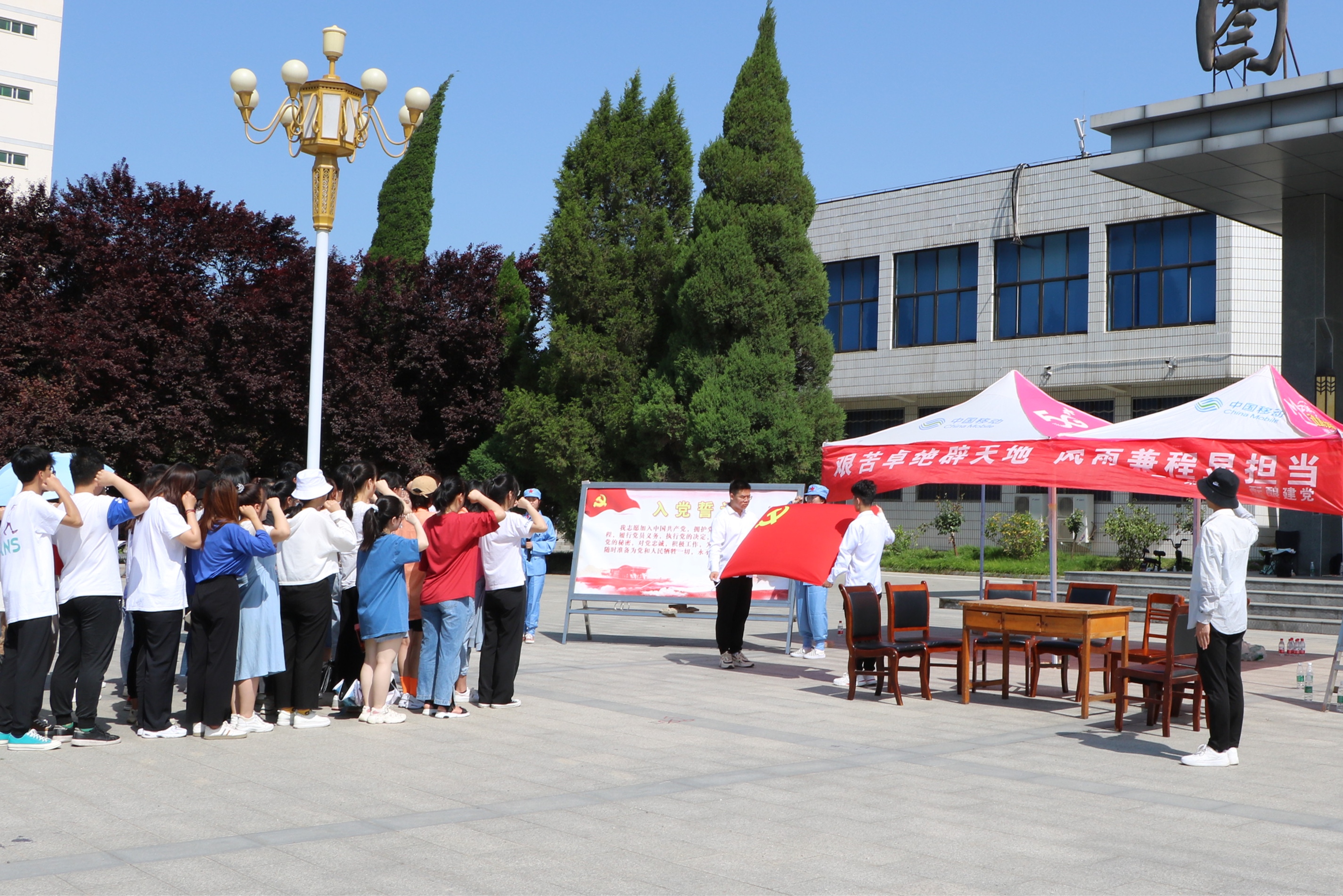 为热烈迎庆中国共产党成立100周年,5月9日上午,由校团委、校学生会主办的“信阳师范学院2021年百年党史校园行素质拓展活动”在校内隆重举行。我校近2000名学生共同参加此次活动。sjb世俱杯网站积极响应学校安排,组织并参加了此次活动。