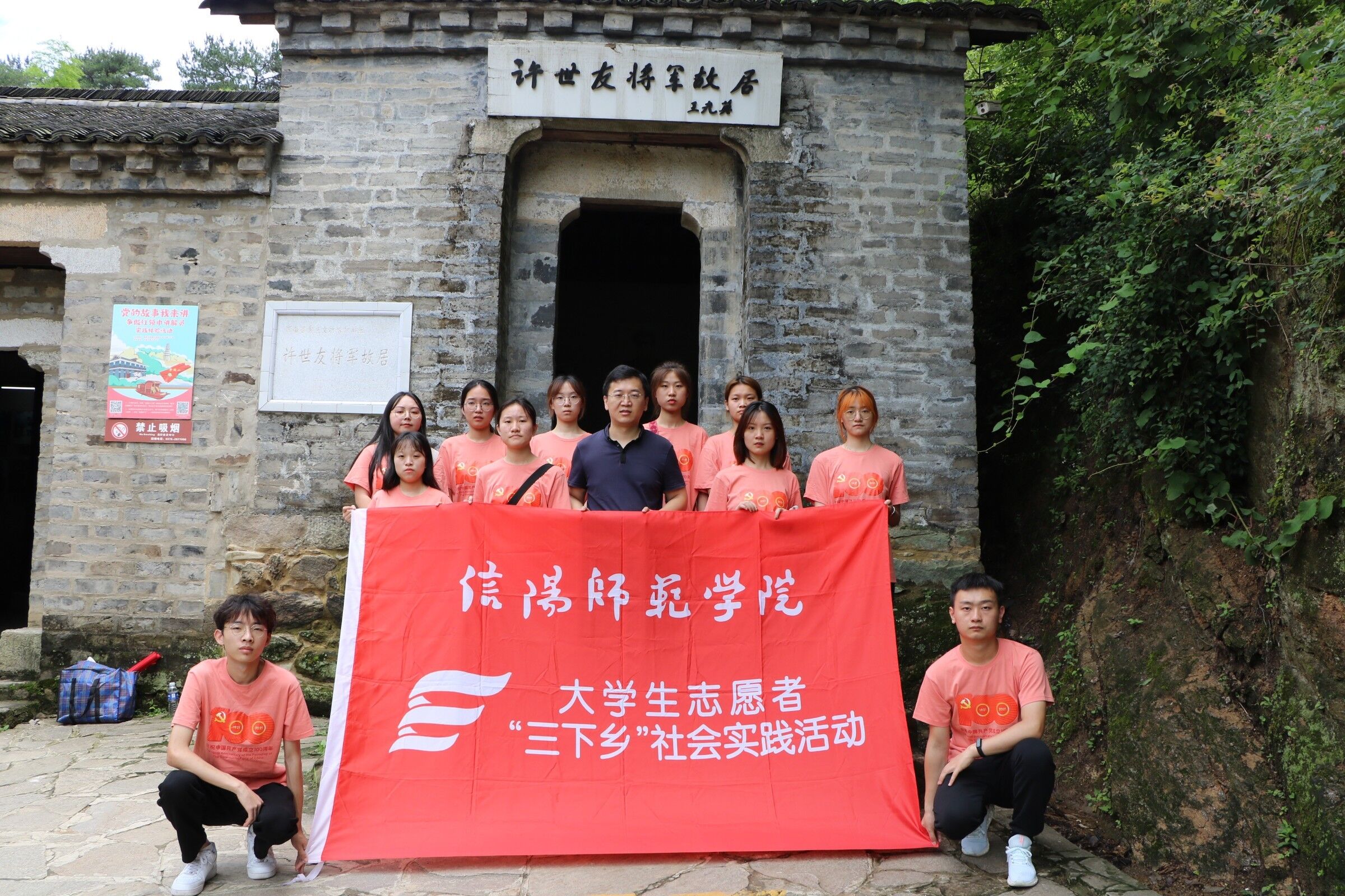 为推动当代青年大学生深入学习习近平新时代中国特色社会主义思想及考察河南时重要讲话,使习近平新时代中国特色社会主义思想内化于心,外化于行。7月3日至7月6日,sjb世俱杯网站“星星之火,可以燎原”理论宣讲团在河南省信阳地区开展2021年暑期“三下乡”社会实践活动,带队老师曹栋和4名小组成员共同参与本次社会实践活动。