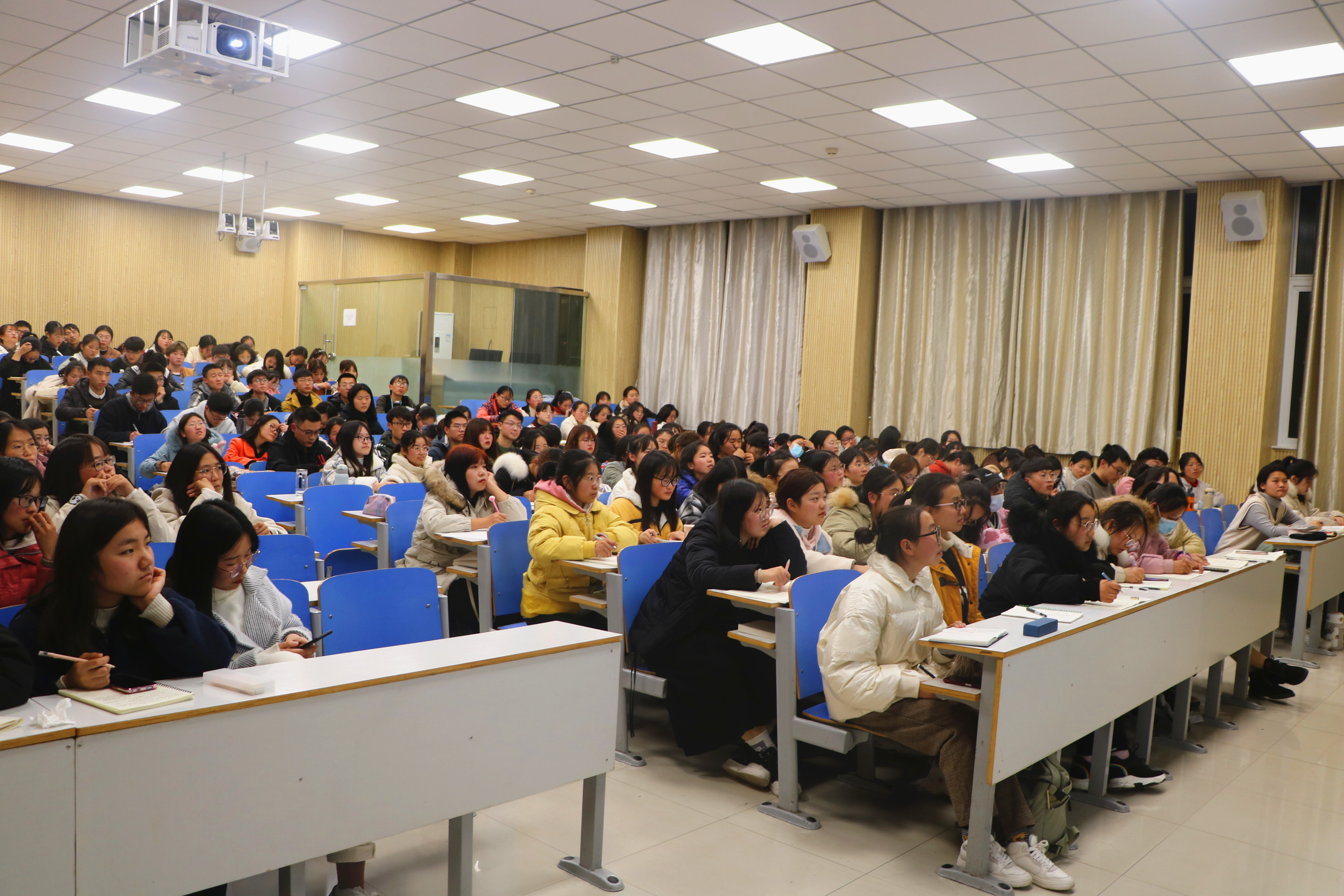 团课上,六位优秀学生代表依次上台演讲。其中,牛笑怡分享了自己参加各类活动的收获,她建议同学们积极参加学校、学院组织的比赛和活动,提高自身综合素质。贾雨晴结合自身学习与生活经验提出,同学们要重视专业课的学习,认真研读经典著作,发扬助人为乐精神,争做优秀团员。温玉婉回答了同学们关心的期末考试、综合测评、入党标准等问题并向同学们推荐经典读物。王文慧、温嘉林、姚佳慧分别讲述了个人生活、学习、工作、参与活动的经历,对同学们合理规划大学生活提供有效借鉴。