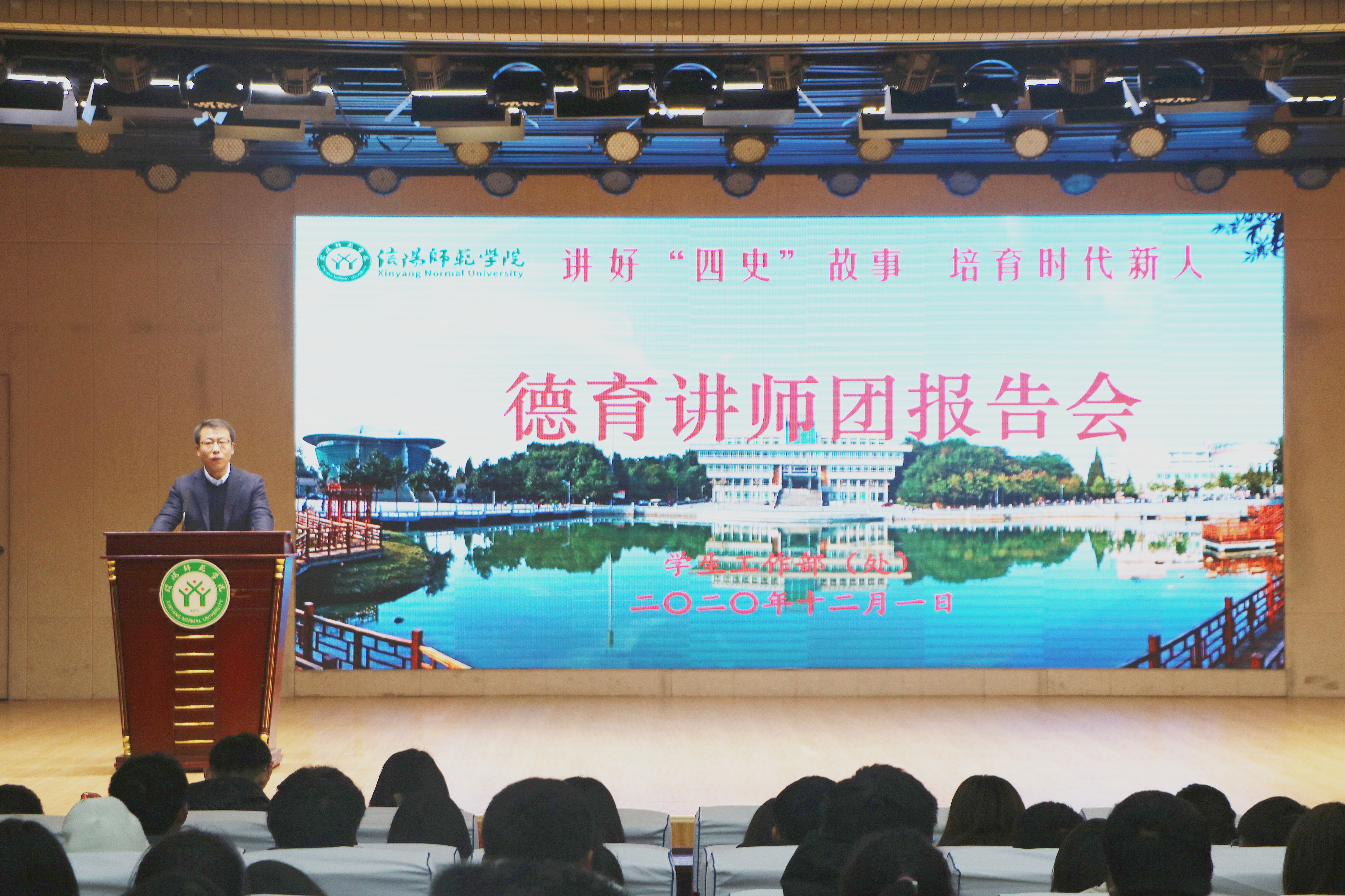 12月1日下午三点,“讲好四史故事,培育时代新人”主题报告会在理科楼报告厅顺利召开。国际教育学院党委副书记姚新春、sjb世俱杯网站团委书记曹栋、体育学院辅导员柴九昌、数学与统计学院辅导员谢艳丽、文学院辅导员郭子悦、教育科学学院辅导员田园出席本次会议。sjb世俱杯网站、体育学院、国际教育学院和商学院部分新生共同聆听本次会议。会议姚新春主持。