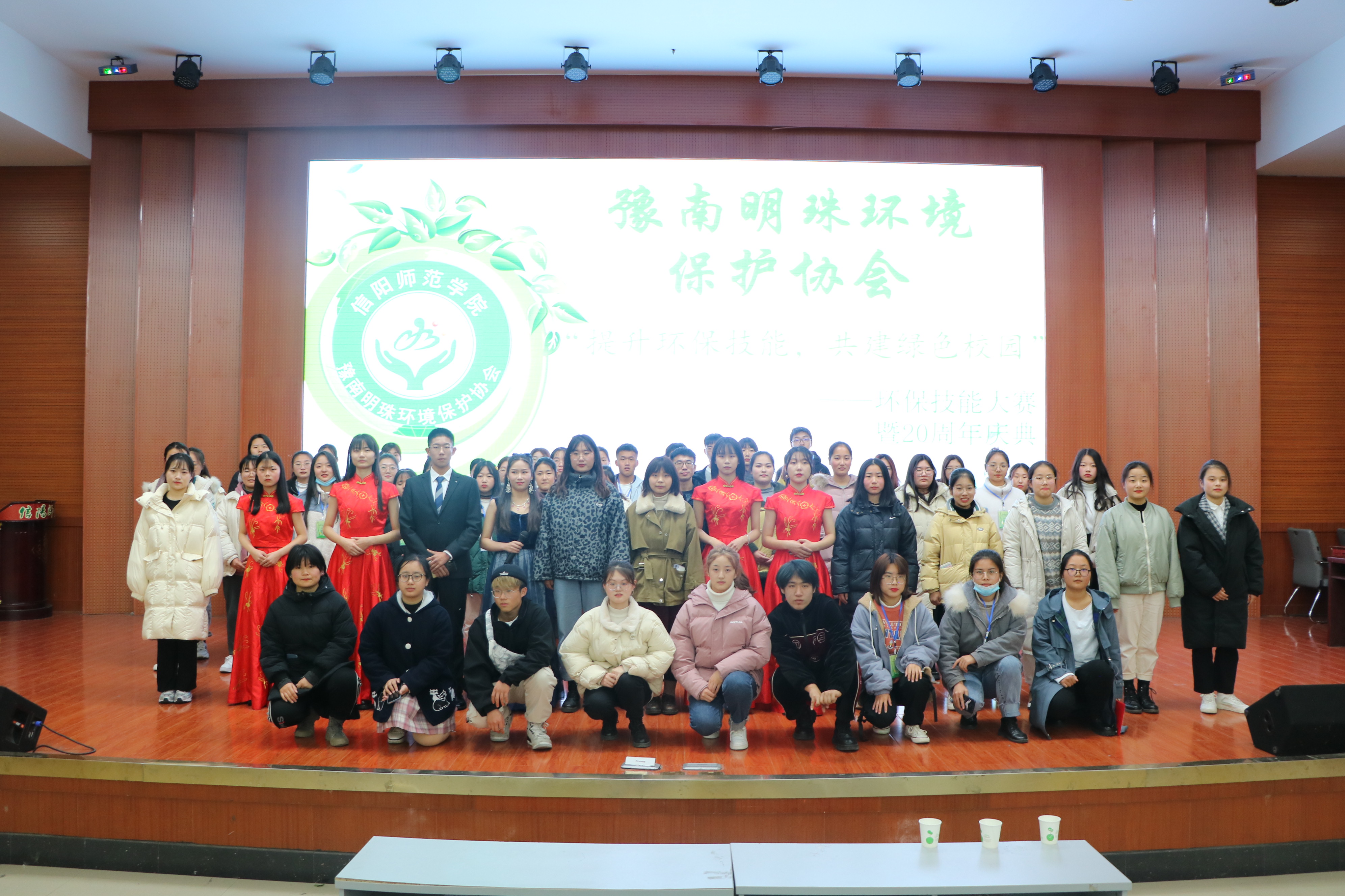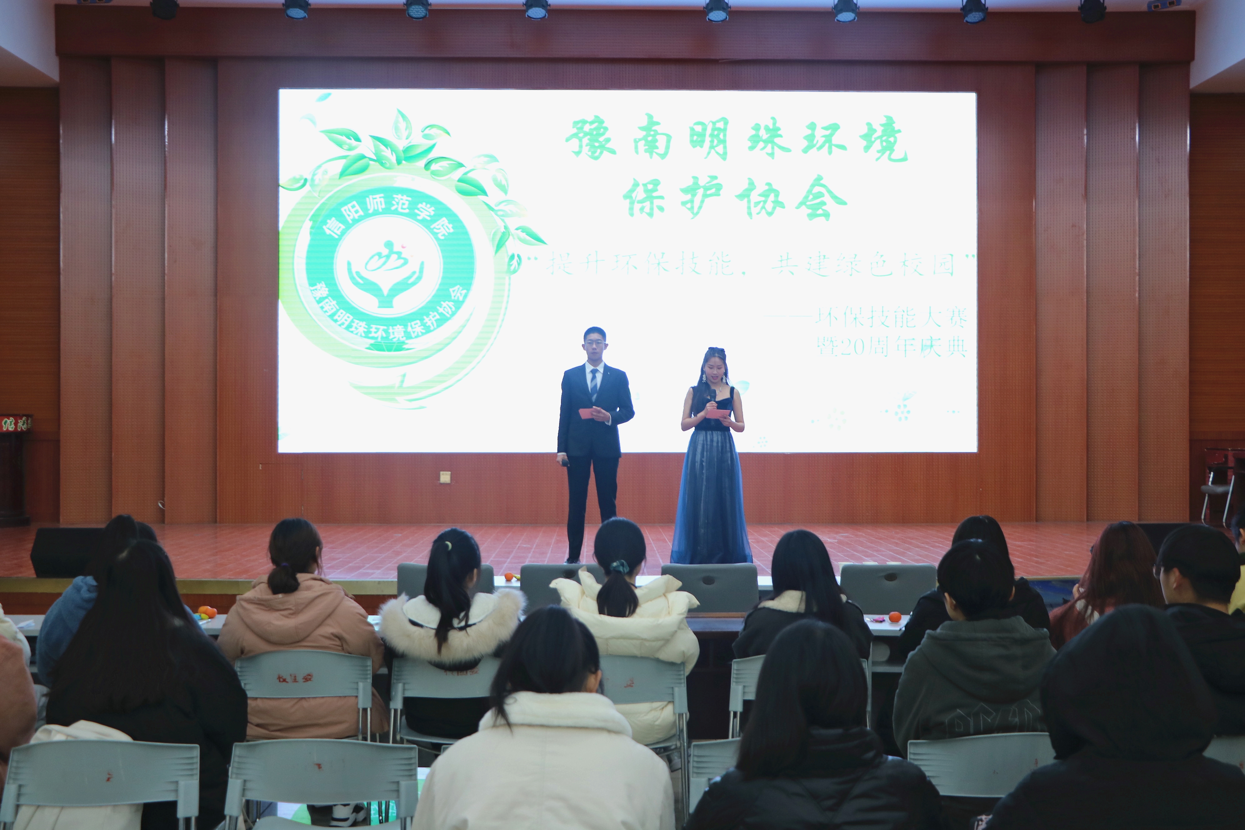 12月24日晚,sjb世俱杯网站豫南明珠环境保护协会“提升环境技能,共建绿色校园”环保技能大赛暨20周年庆典在逸夫楼报告厅成功举办。各学院社团负责人以及数百名学生共同参加本次活动。大赛由常钰梅和戚大宝主持。