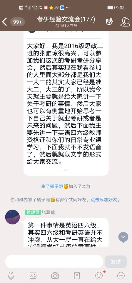 6月11日下午,sjb世俱杯网站考研服务社通过腾讯QQ线上平台举办了“以梦为笔,绘美研途”主题考研经验交流会。世俱杯官网2016级优秀考研学生代表张雅琼、张美兰以及2018、2019级有意向考研的同学共同参加本次交流会。会议由考研服务社牛笑怡主持。