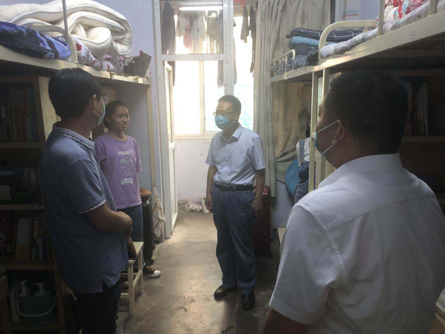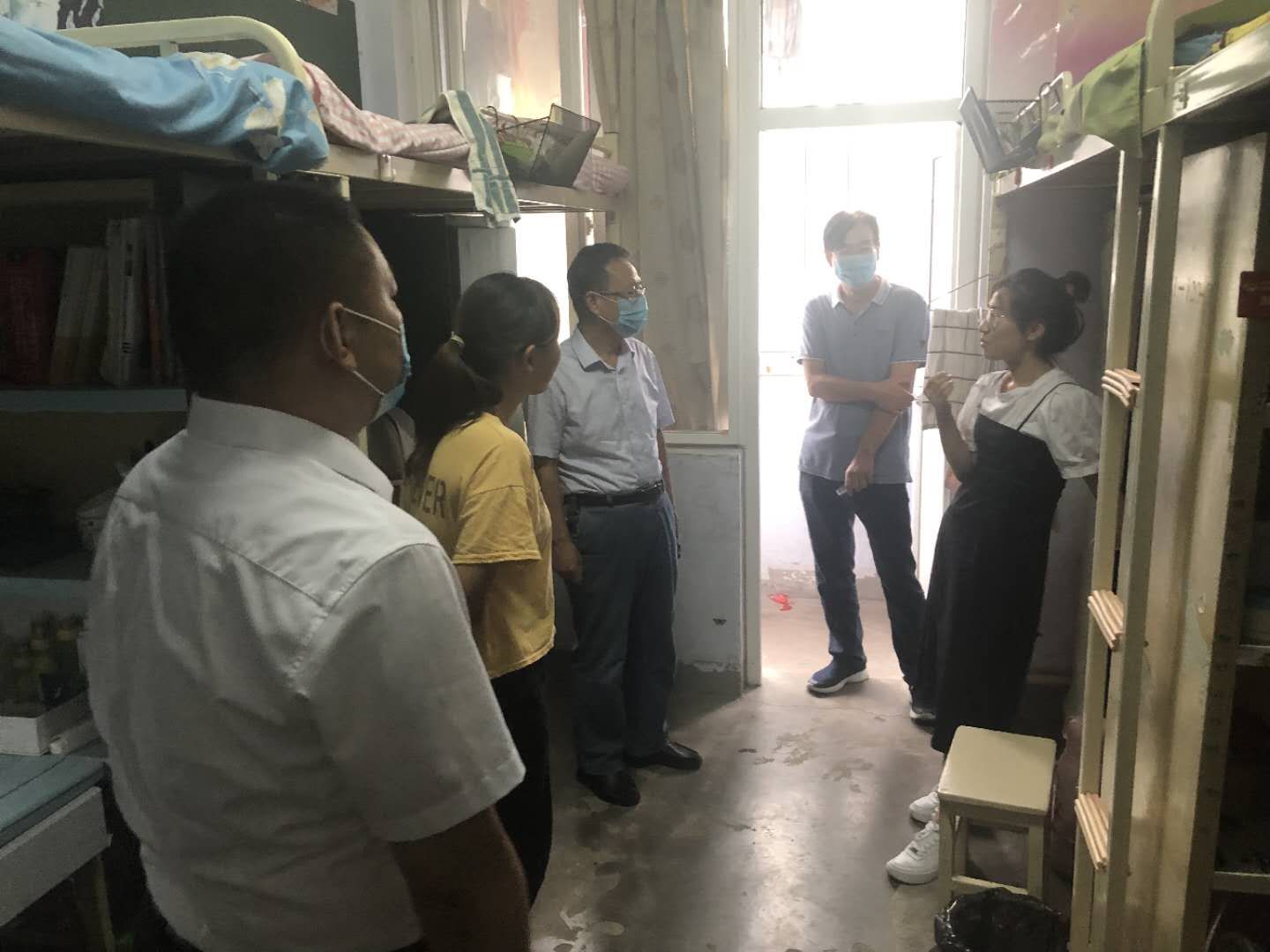 为了解世俱杯官网学生返校适应状况,及时排查宿舍安全隐患,9月8日晚,sjb世俱杯网站党委书记唐国战,党委副书记何晓坚,副院长周智,团委书记曹栋及学生会生活劳卫部成员对世俱杯官网学生宿舍进行慰问活动。