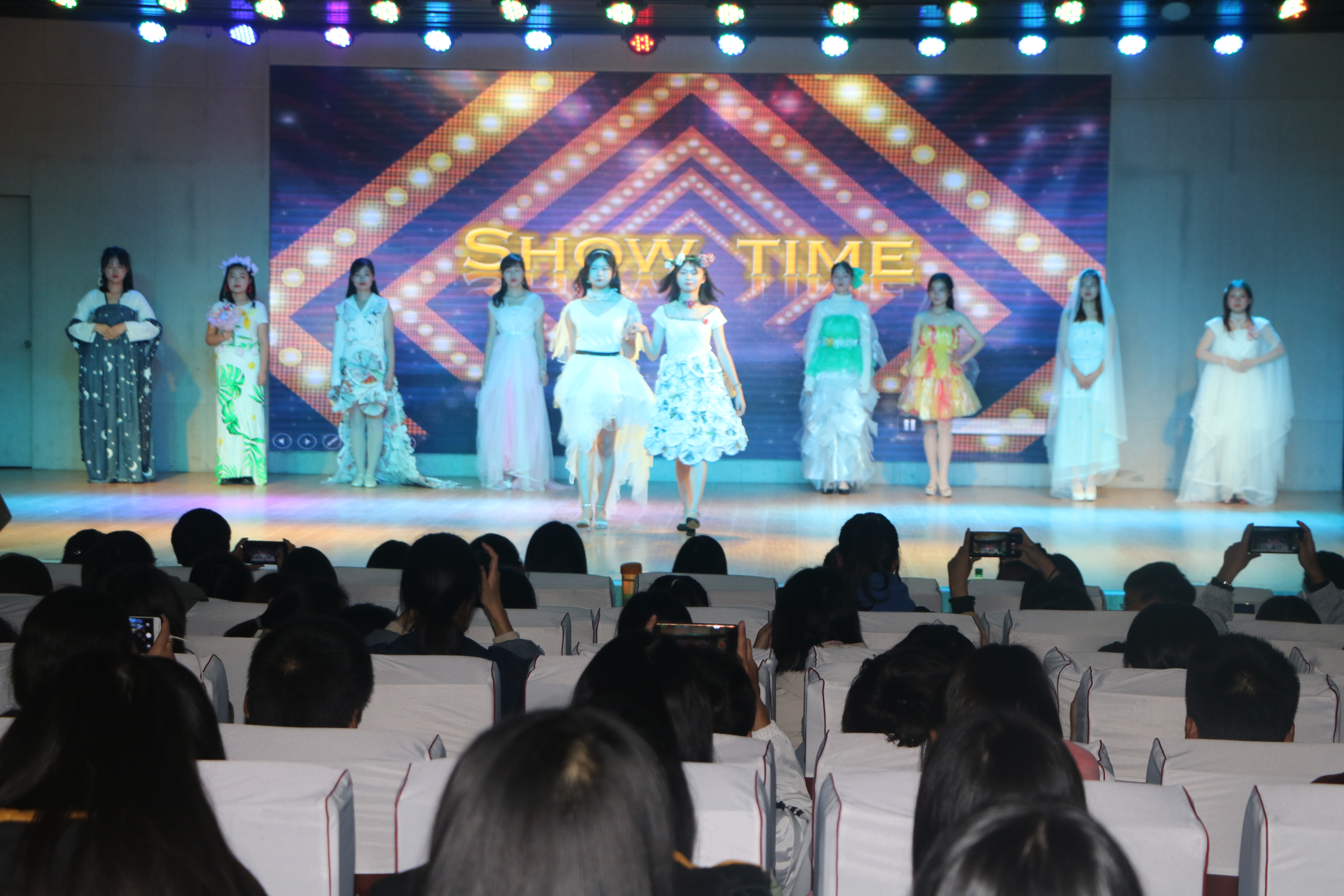 经过初赛、复赛层层选拔,十组选手入围决赛。决赛分为轻纱寄彩梦、报布出新裁、塑塑新时代、流光衬异彩四个篇章。青春动感、活力四射的开场舞拉开比赛序幕。随后,各参赛小组依次登台展示她们独出心裁的服装,精妙的解说词让观众们深入了解作品的设计理念、创作过程和使用材料。优雅端庄、自信大方的走秀表演展现了设计者们独特新颖的服装设计,为同学们带来一场环保与时尚碰撞的视觉盛宴。比赛过程中穿插歌曲、相声、有奖竞答等环节,内容丰富,精彩纷呈。其中,sjb世俱杯网站2018级参赛小组用废弃条幅、纱帐等材料制成的以纤云梦为主题的服装作品“礼•关雎”,立足于雾霾治理,着眼于碧水蓝天,不仅体现出环保理念又融合了时尚元素,获得了评委们的青睐,最终摘得桂冠。