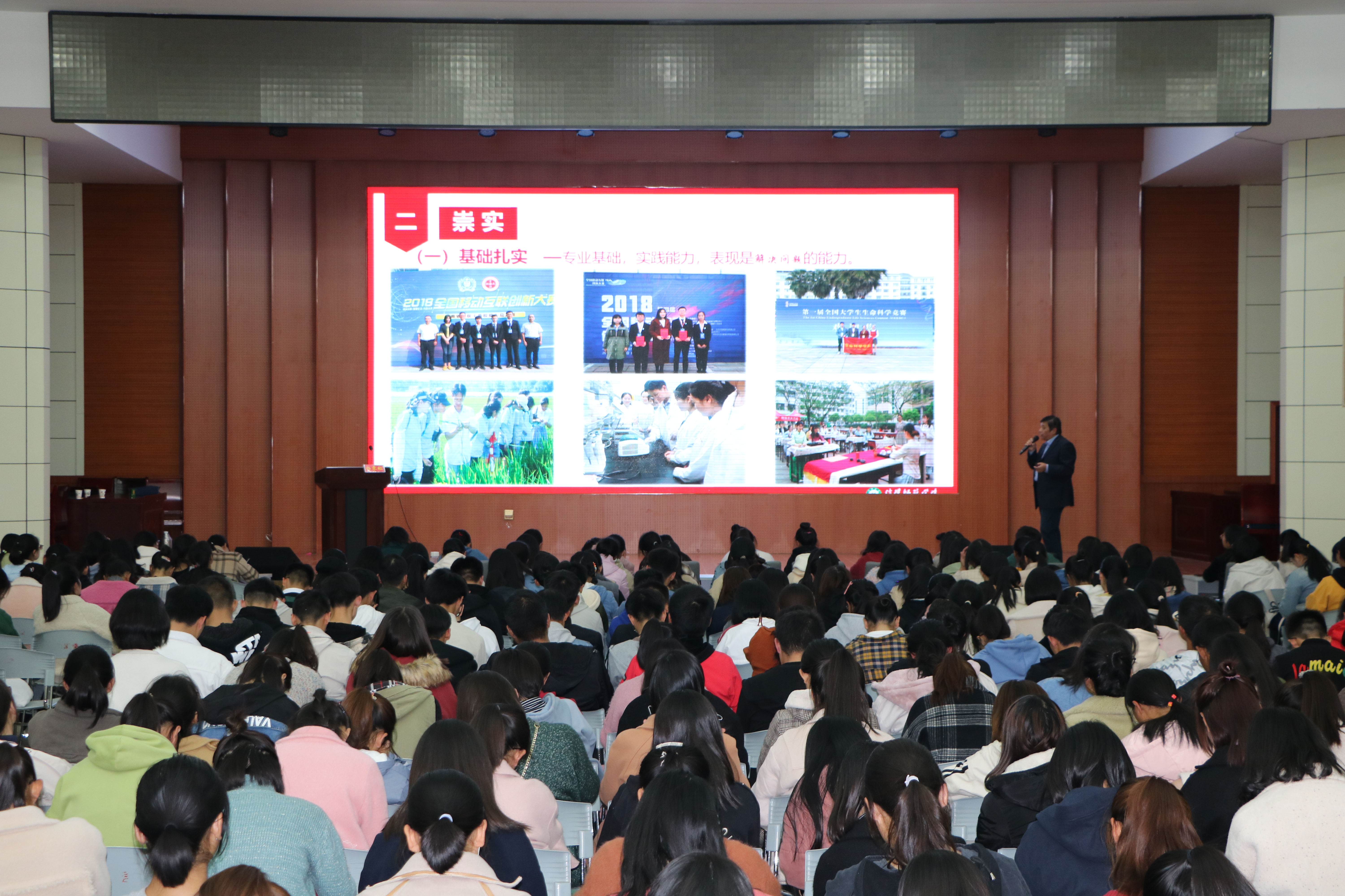 11月19日下午,生命科学学院党委副书记杨霁虹在逸夫楼报告厅为世俱杯官网新生团员讲授题为“校训引领我成长”的主题团课。sjb世俱杯网站团委书记曹栋、化学化工学院团委书记邓耀辉,sjb世俱杯网站、化学化工学院全体新生团员共同聆听本次团课。