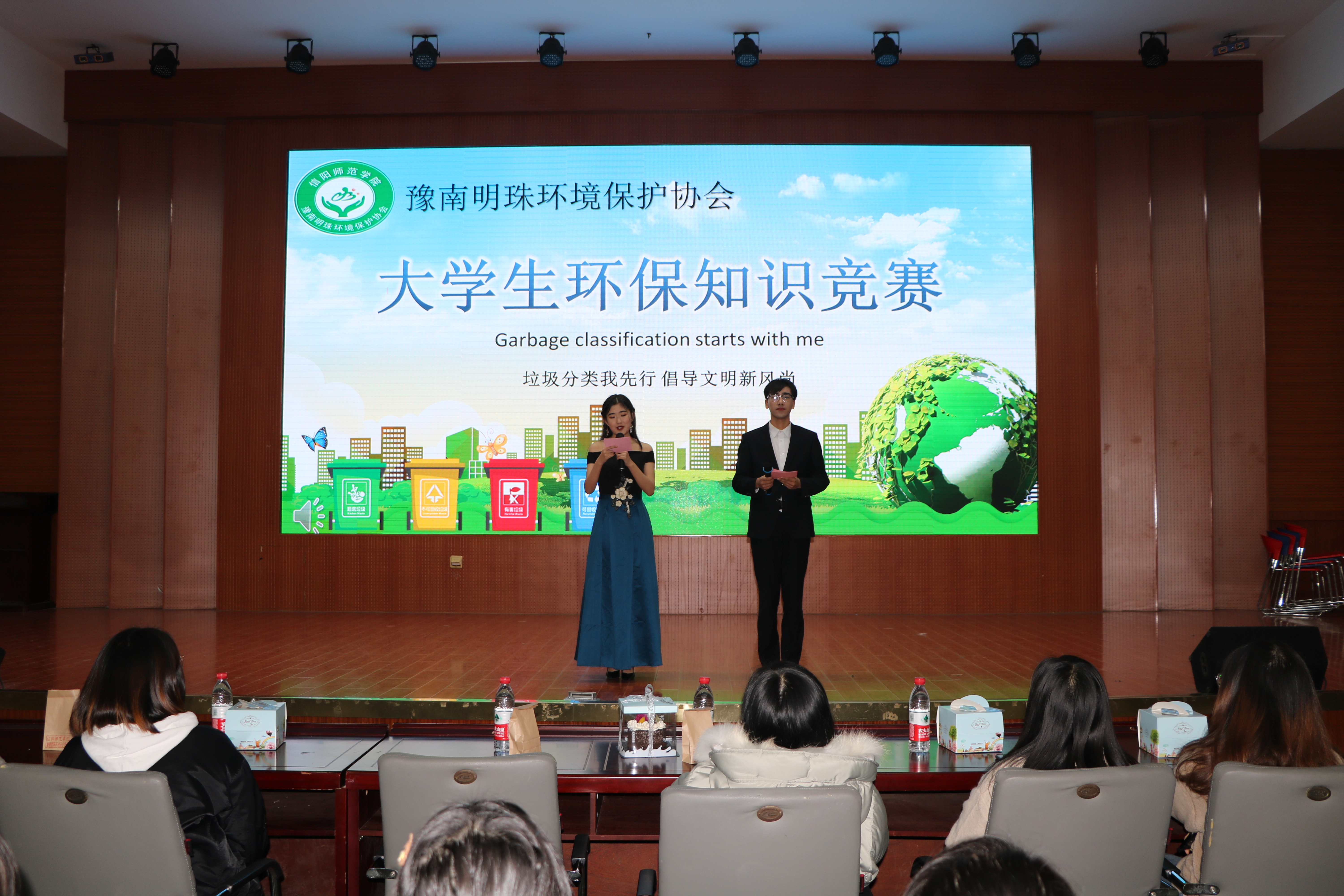 为响应习近平总书记对于垃圾分类工作的重要指示,呼吁更多学生关注和参与生态环境保护,12月7日晚,由信阳师范学院后勤管理处、sjb世俱杯网站分团委主办,豫南明珠环境保护协会承办的以“垃圾分类我先行,倡导文明新风尚”为主题的大学生环保知识竞赛决赛于逸夫楼报告厅成功举行。信阳师范学院后勤管理处龚关老师,sjb世俱杯网站豫南明珠环境保护协会指导老师胡春湘、世俱杯官网学生会主席团、各兄弟社团以及400余名学生共同参与本次活动。比赛由王誉博和赵万里主持。