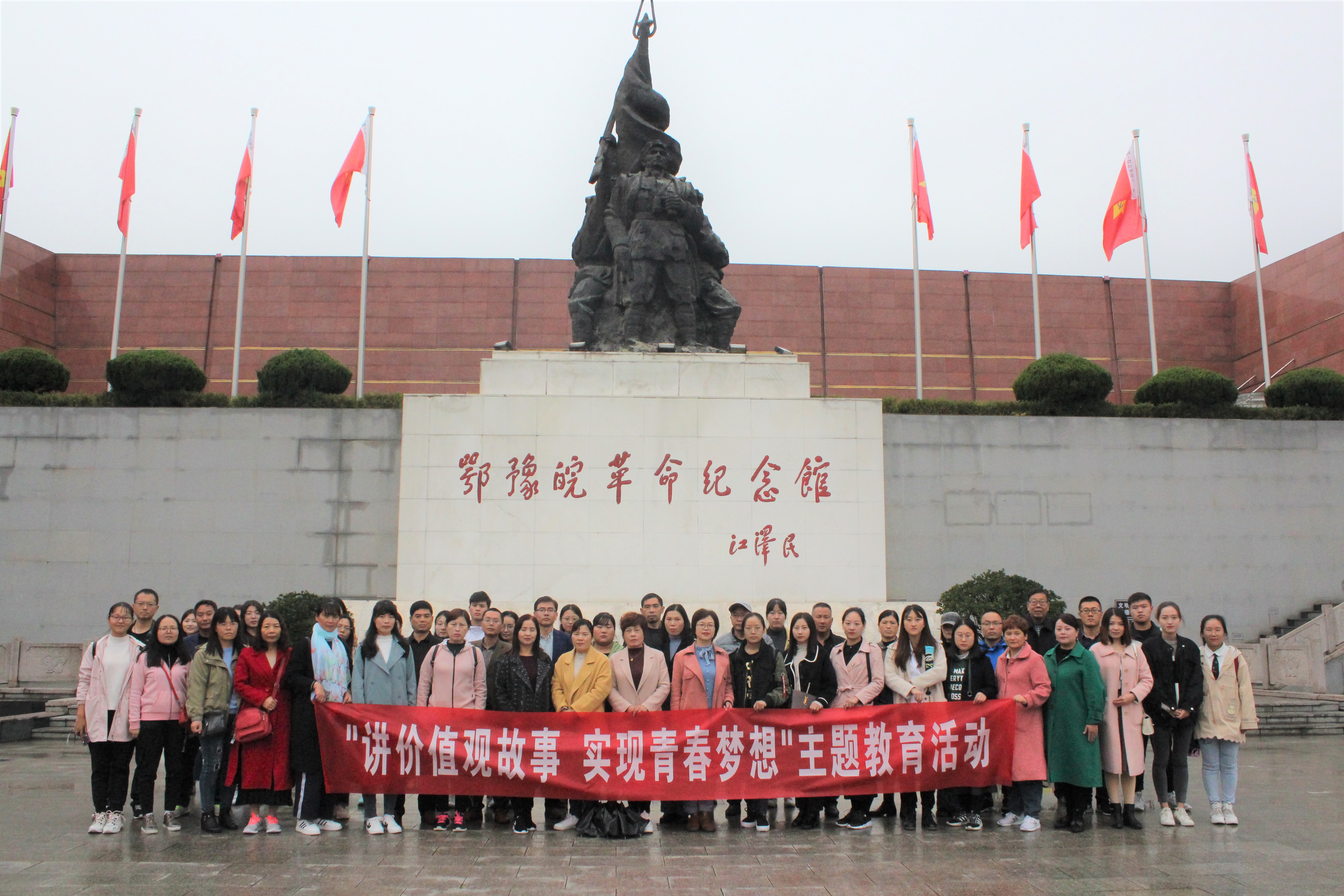 10月25日,sjb世俱杯网站在信阳市博物馆和鄂豫皖纪念馆开展“讲价值观故事,实现青春梦想”主题宣讲活动。团委老师曹菁菁、陶青青与宣讲同学共同参与本次活动。