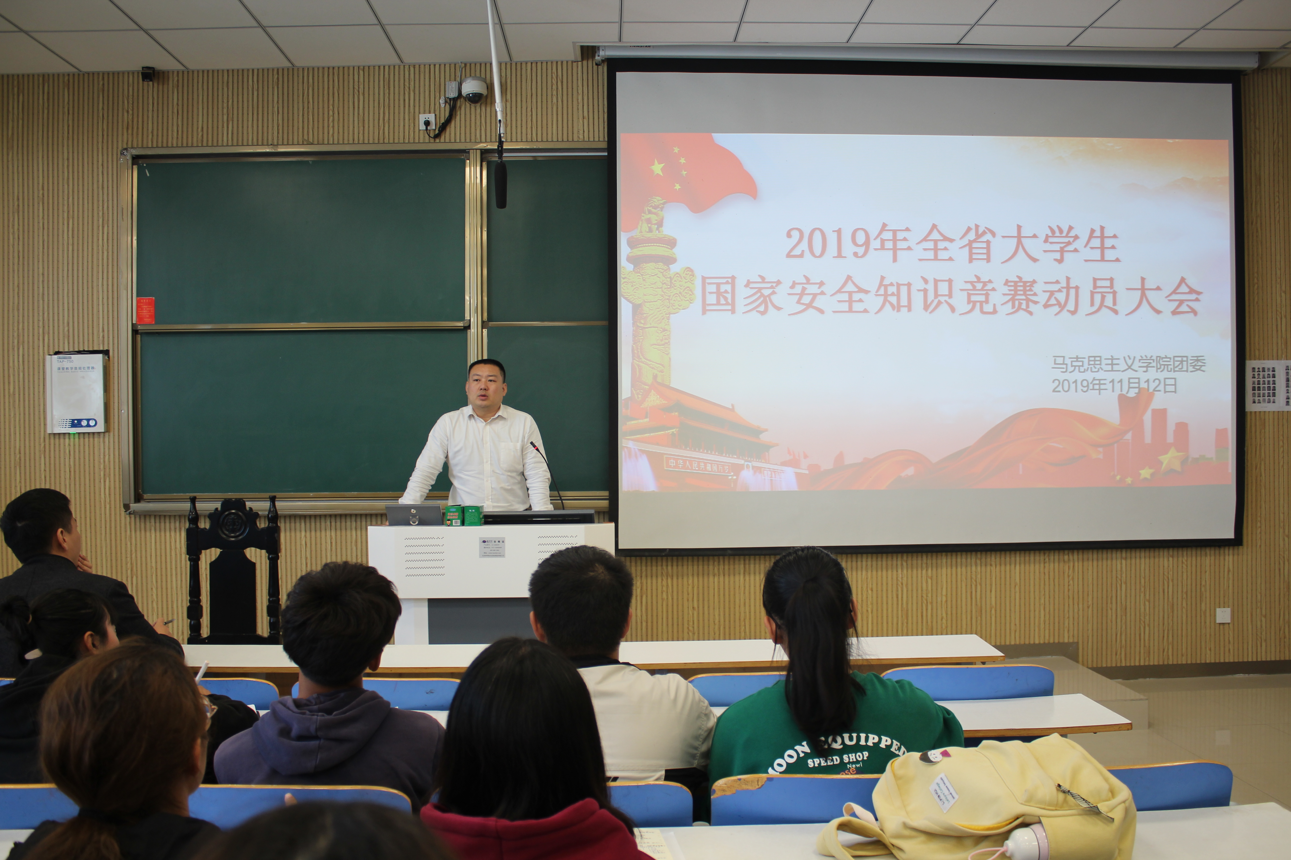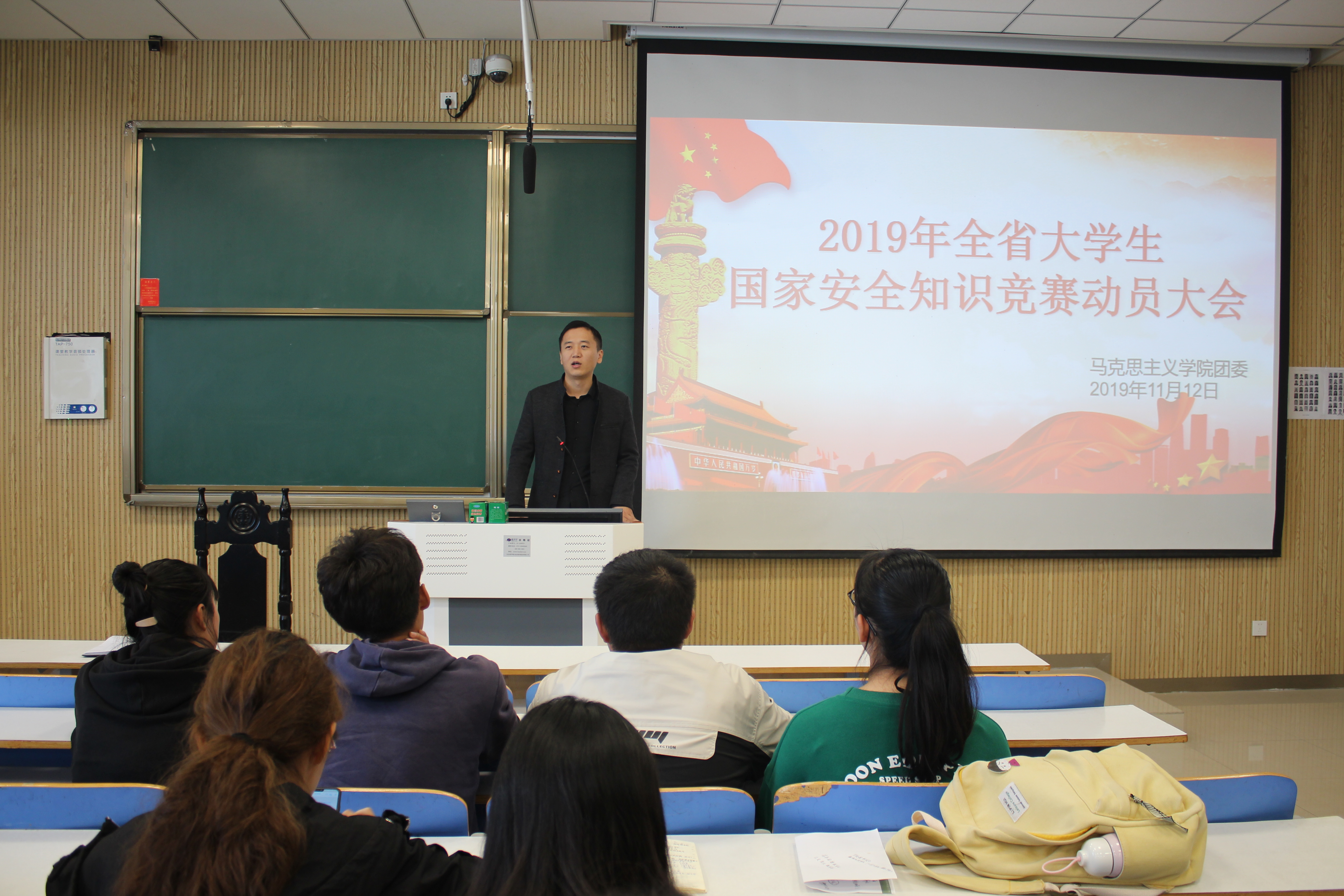 11月12日上午,sjb世俱杯网站团委在社科楼515教室召开2019年全省大学生国家安全知识竞赛动员大会。sjb世俱杯网站党委副书记何晓坚,团委书记曹栋,学生会主席团及各部门成员共同参加本次动员大会。会议由秘书处李静主持。