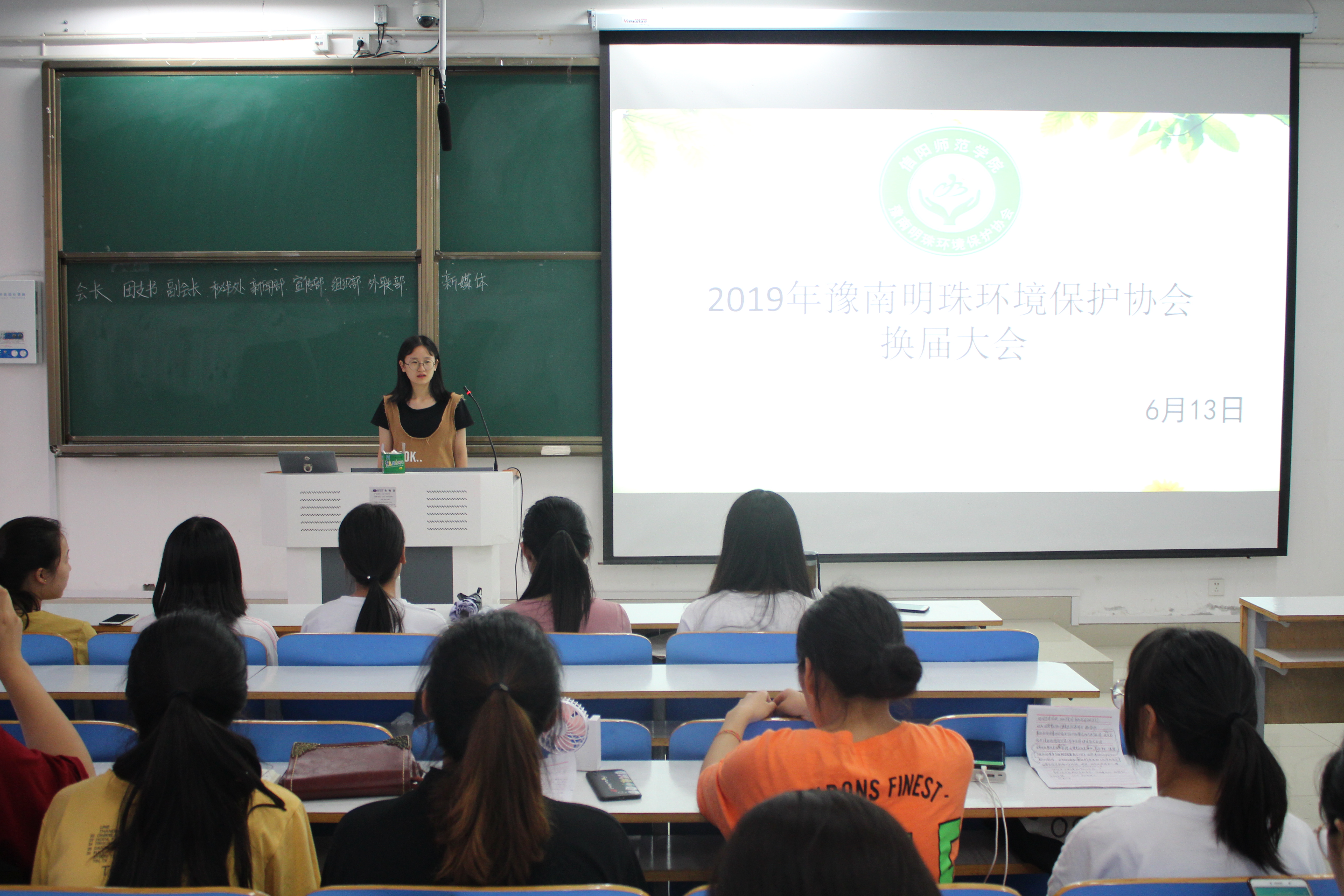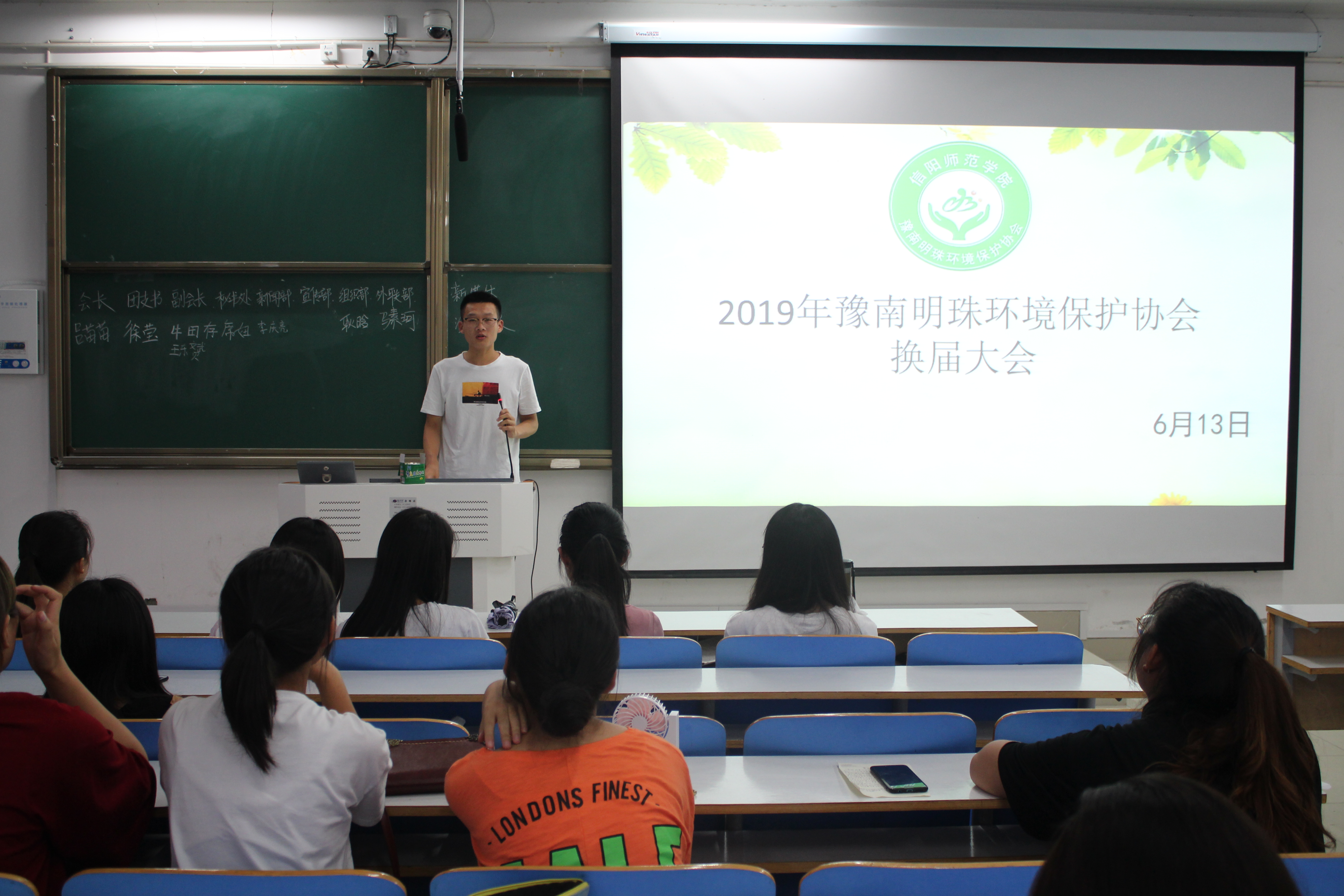 6月13日晚,豫南明珠环境保护协会在社科楼516教室顺利举行2018-2019学年社团换届竞选大会。sjb世俱杯网站分团委学生会副主席高蓉、社长丁素艳、团支书郑梦丹及18级全体成员共同参加了此次全会。会议由丁素艳主持。