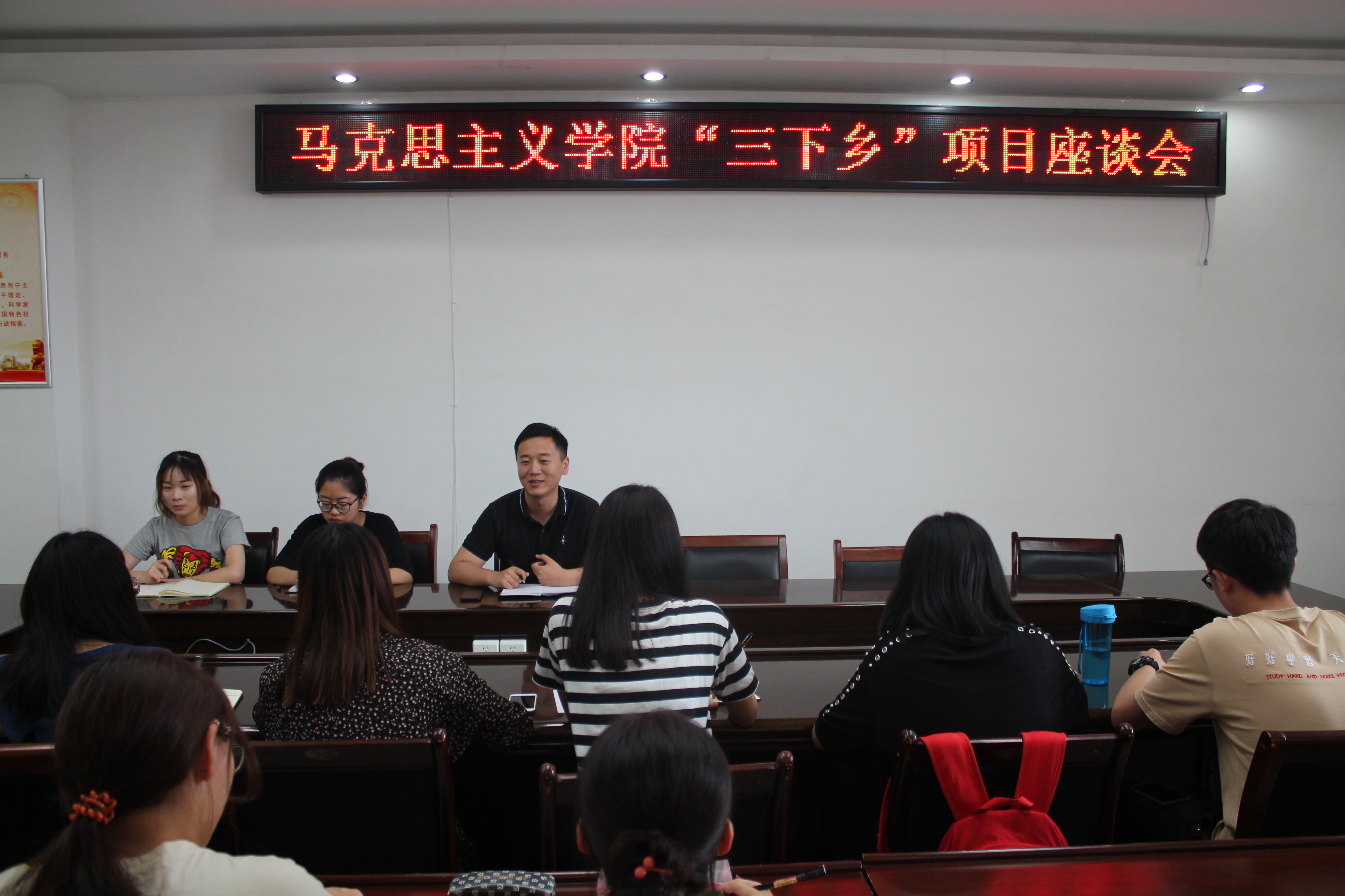 座谈会上,曹栋首先对《信阳师范学院2019年大学生暑期“三下乡”社会实践活动方案》进行解读,对活动流程、团队规则、申报审核等相关要求进行详细阐述,并强调实地调研的可行性。接着,各项目负责人依次介绍本团队的项目选题,围绕美丽乡村建设、红色专题调研、理论普及宣讲以及环境污染治理等方面简述他们的具体想法。最后,曹栋针对个别选题存在切入点较大、可行性较低等问题,提出一些整改建议,希望各团队能够仔细研磨,将专业知识运用到实践中去,在实践中锻炼专业能力,并预祝“三下乡”社会实践活动取得圆满成功。
