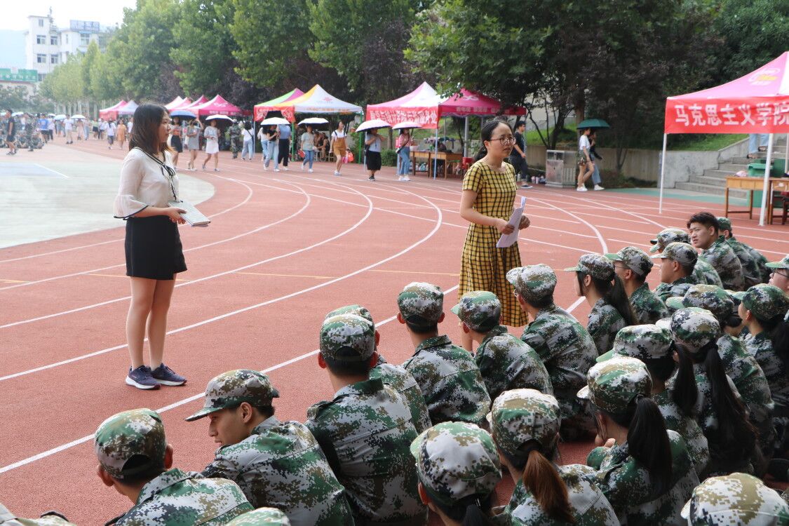 为提高新生爱党、爱国、爱军意识,并加强学生军训期间的安全教育管理,sjb世俱杯网站于9月11日在东操场开展了2019级军训动员大会。世俱杯官网辅导员老师曹菁菁、陶青青以及2019级全体新生共同参与本次大会。大会由陶青青主持。