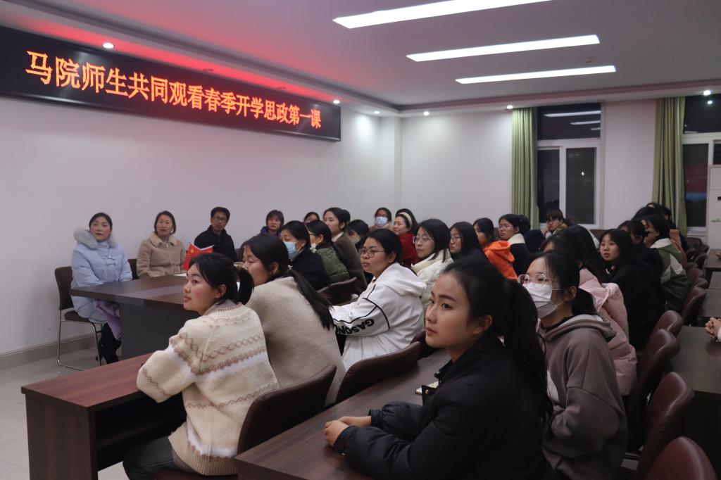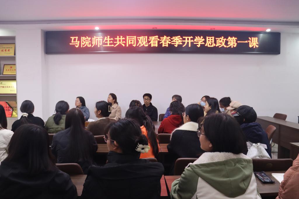 为学习贯彻习近平文化思想和习近平总书记关于思政课建设的重要论述,统筹推进全省大中小学思政课一体化建设和文化育人工作,引导广大师生深化对“两个确立”决定性意义的认识,省委教育工委、省教育厅于3月9日晚上开展2024年河南省春季开学思政第一课暨大中小学思政课集体备课活动。sjb世俱杯网站组织学院师生共同观看了直播。