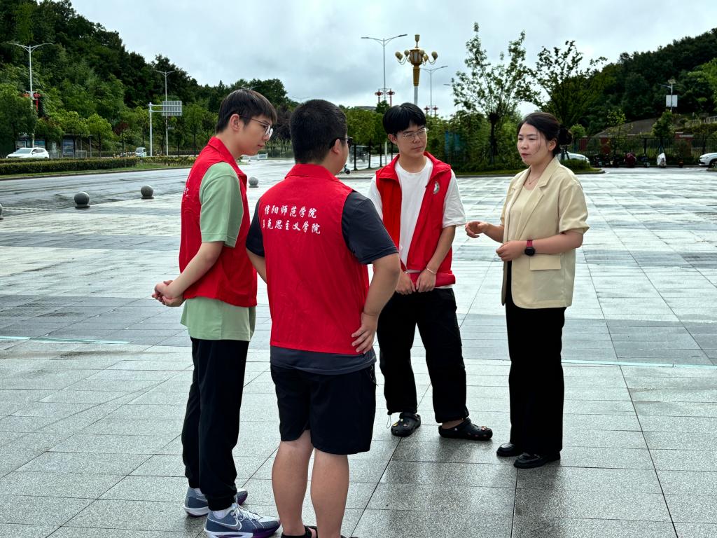 7月5日上午,sjb世俱杯网站“青心寻红薪,矢志育新人” 基层服务践行团在逸夫楼204会议室、信阳师范大学北大门前举行2024年暑期“三下乡”社会实践活动启动仪式。世俱杯官网团委书记陶青青,2023年“三下乡”省级重点实践团队代表任振豪,本团队全体实践人员共同参与此次会议。
