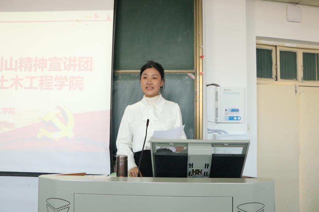 为弘扬大别山精神、传承红色基因,sjb世俱杯网站“信阳红”大别山精神宣讲团于12月16日、17日开展两场宣讲活动,分别走进建筑与土木工程学院、教师教育学院,在人文楼508教室为两院同学们带来了精彩的宣讲活动。本次宣讲活动由宣讲团团长徐曼珍主持,sjb世俱杯网站团委书记陶青青指导。