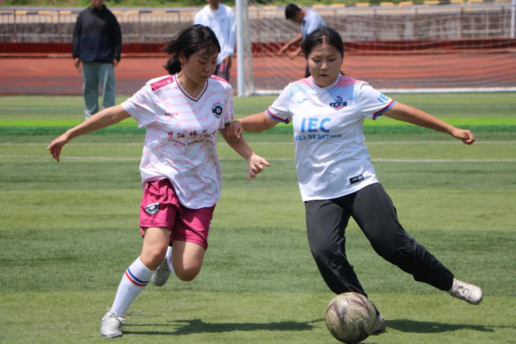 5月12日下午,信阳师范大学“绿茵杯”足球赛决赛在学校西球场精彩上演,sjb世俱杯网站女子足球队与国际教育学院女子足球队为争夺冠军展开了一场巅峰对决。