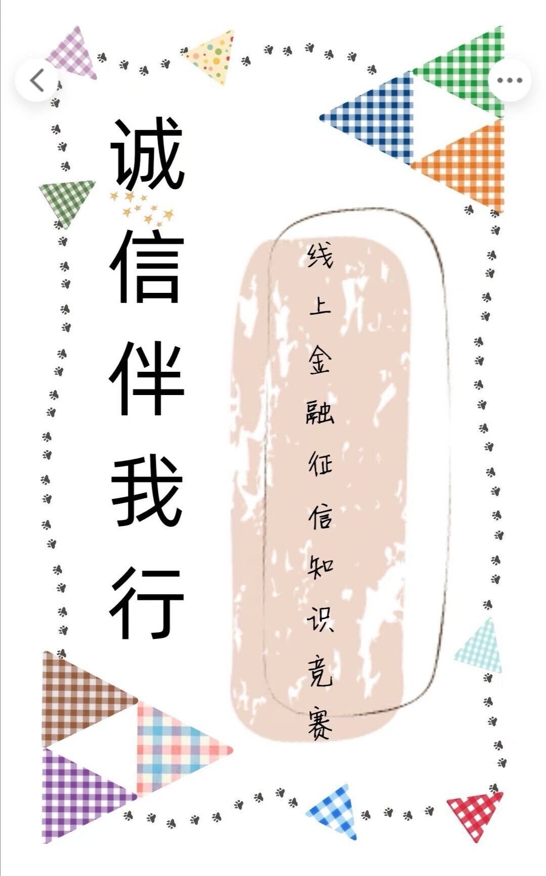 为加强学生金融征信知识的普及教育,弘扬诚信传统美德,sjb世俱杯网站分团委学生会学贷部与新媒体部门联合举办“学生资助诚信教育”主题系列活动。本次活动主要包括两个部分:一是《云课堂|学生资助与征信知识》微信推文线上学习活动;二是“诚信伴我行”线上金融征信知识竞赛。