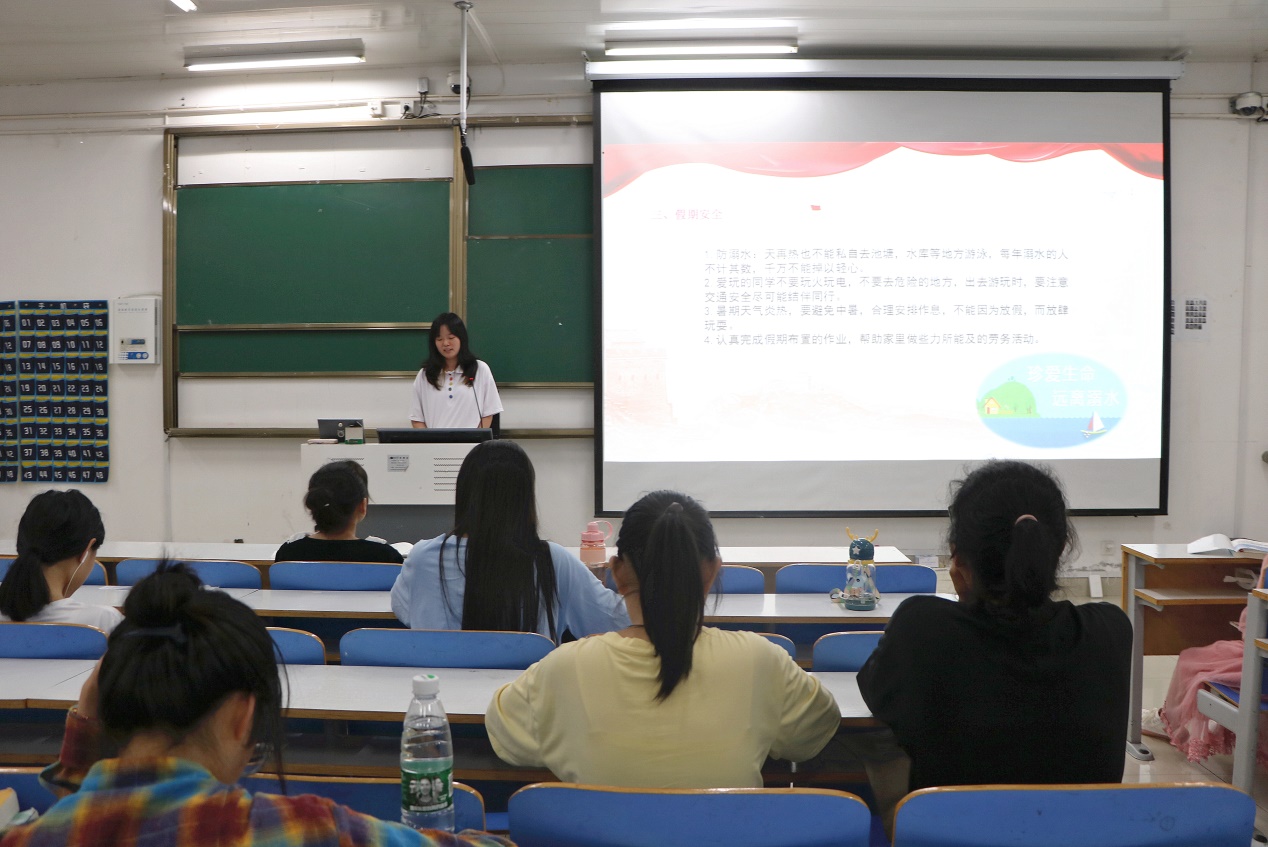 董菊苹围绕会议主题,结合实际案例,通过幻灯片放映向同学们详细讲解了有关人身财产安全、校园安全的基本知识。她表示,同学们要提高安全意识,保持警惕性,避免上当受骗,同时要理性消费、珍爱信用,远离“不良贷款”,要严格遵守校园安全规则,规范自身行为。最后,曹栋对本次班会进行总结。他强调,同学们在校期间要严格遵守宿舍用电规则和校园交通规则,谨防网络诈骗、违法刷单、非法网贷,将安全问题牢记于心,自觉遵守校规校纪,争做文明信师人。