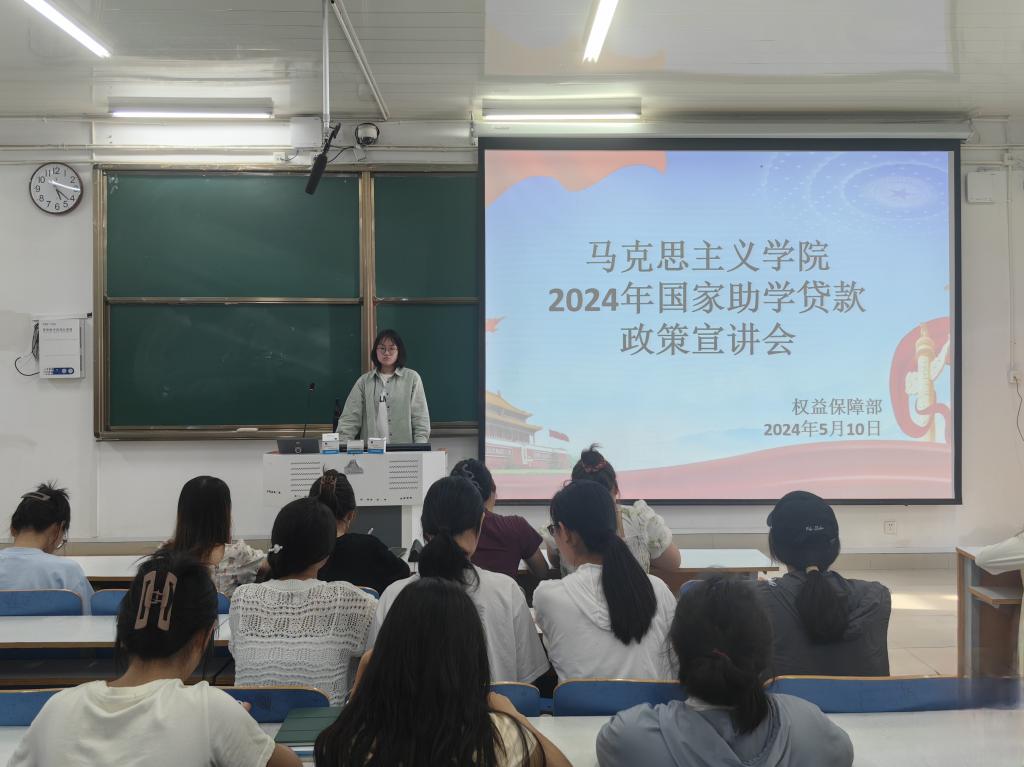 为进一步宣传国家助学贷款政策,落实助学贷款服务与资助育人工作。5月10日,sjb世俱杯网站在社科楼514教室召开2024年国家助学贷款政策宣讲会,sjb世俱杯网站权益保障部成员,2022级全体学生共同参加本次会议,会议由权益保障部负责人王含昱主持。