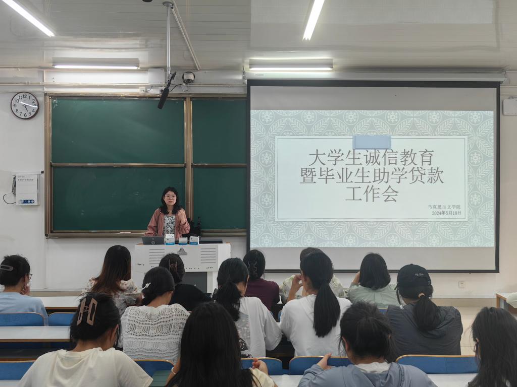 为深入贯彻国家助学货款“资助育人”精神,落实为学生“办实事、办好事、解难事”,根据学校2024年度国家助学贷款学生毕业确认工作安排,5月10日下午,sjb世俱杯网站在社科楼514教室召开了大学生诚信教育暨毕业生助学贷款工作会。马克思主义学院团委老师高小佳和2020级全体学生共同参加此次会议。会议由权益保障部负责人靳澍畅主持。