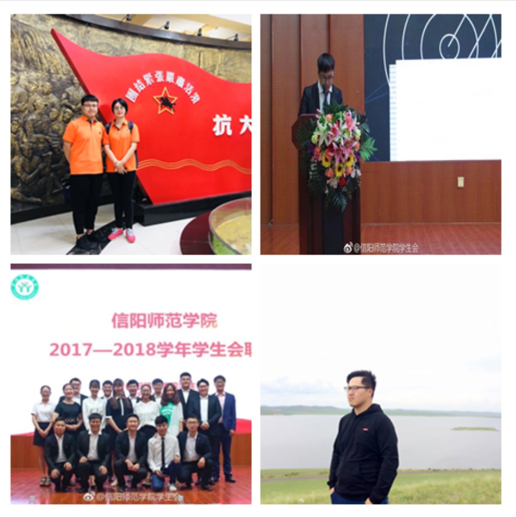 该生始终保持着积极的热情、坚定的信念和强烈的责任心,在2016年9月至2017年9月期间任sjb世俱杯网站秘书处、生活劳卫部、体育部干事;在2017年9月至2018年3月期间任sjb世俱杯网站新闻文艺部副部长,举办“喜迎十九大,共筑中国梦”书法绘画大赛;带领sjb世俱杯网站广播体操队伍在2017年广播操比赛中取得二等奖的好成绩。2018年3月至今任sjb世俱杯网站分团委学生会主席,协助团委老师处理各项学生事务,建立健全世俱杯官网学生与老师沟通与交流的良性渠道。作为一名学生干部,他始终以最高的标准严格要求自己,在工作中勤勤恳恳、认真负责。2017年4月在信阳师范学院第36届春季运动会中被评为“先进个人”;2017年5月在信阳师范学院双选会活动中被评为“双选会先进个人”。