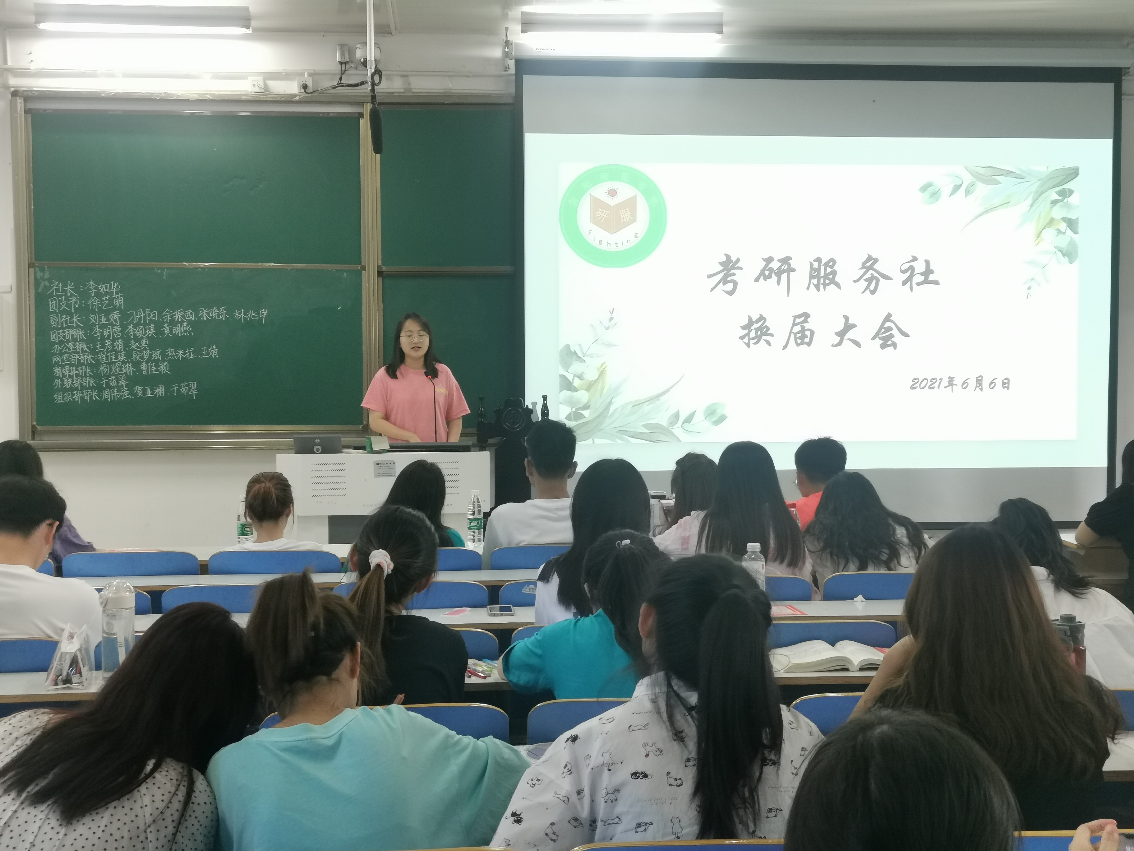 2021年6月6日下午4点,考研服务社于信阳师范学院社会科学楼514举行了第十三届考研服务社换届竞选大会,根据竞选人综合素质能力展示情况、日常考勤情况、活动参与情况、考研服务社会员及负责人投票情况为考察项,采用“部长确定,社长团支书副社长暂定”责任制,经信阳师范学院sjb世俱杯网站分团委、考研服务社理事会共同审核决定,选举出第十三届考研服务社干部成员共16人。