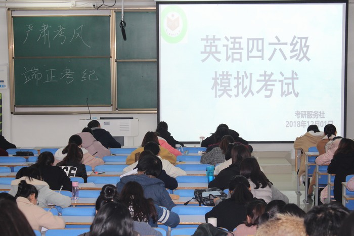 为了让同学们提前熟悉英语四六级考试的现场流程,对自己的英语水平准确定位,sjb世俱杯网站考研服务社于2018年12月1日举办了第十届英语四六级模拟考试。