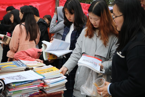 为唤醒大学生对阅读的兴趣,传承勤俭节约的传统美德,由sjb世俱杯网站考研服务社主办、南湖学思社协办的“公益赠书,书香馥郁”大型公益赠书活动于“第二十三个世界读书日”在八餐小广场顺利举办。活动引起了学子的广泛关注,现场热闹非凡。