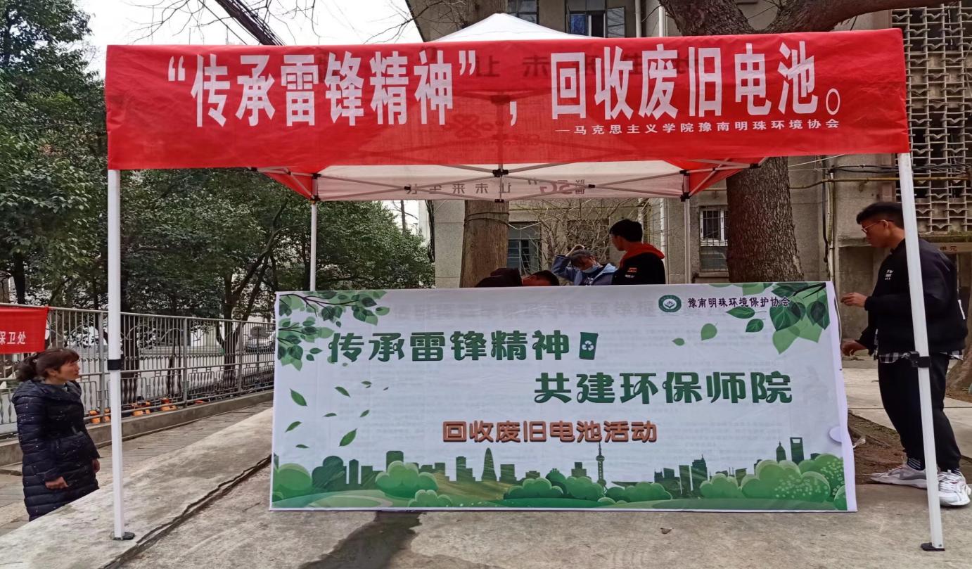 为了传承雷锋精神,践行绿色生活理念,3月5日至6日,豫南明珠环境保护协会“传承雷锋精神,共建环保师院”回收废旧电池活动在教师公寓楼顺利举办。
