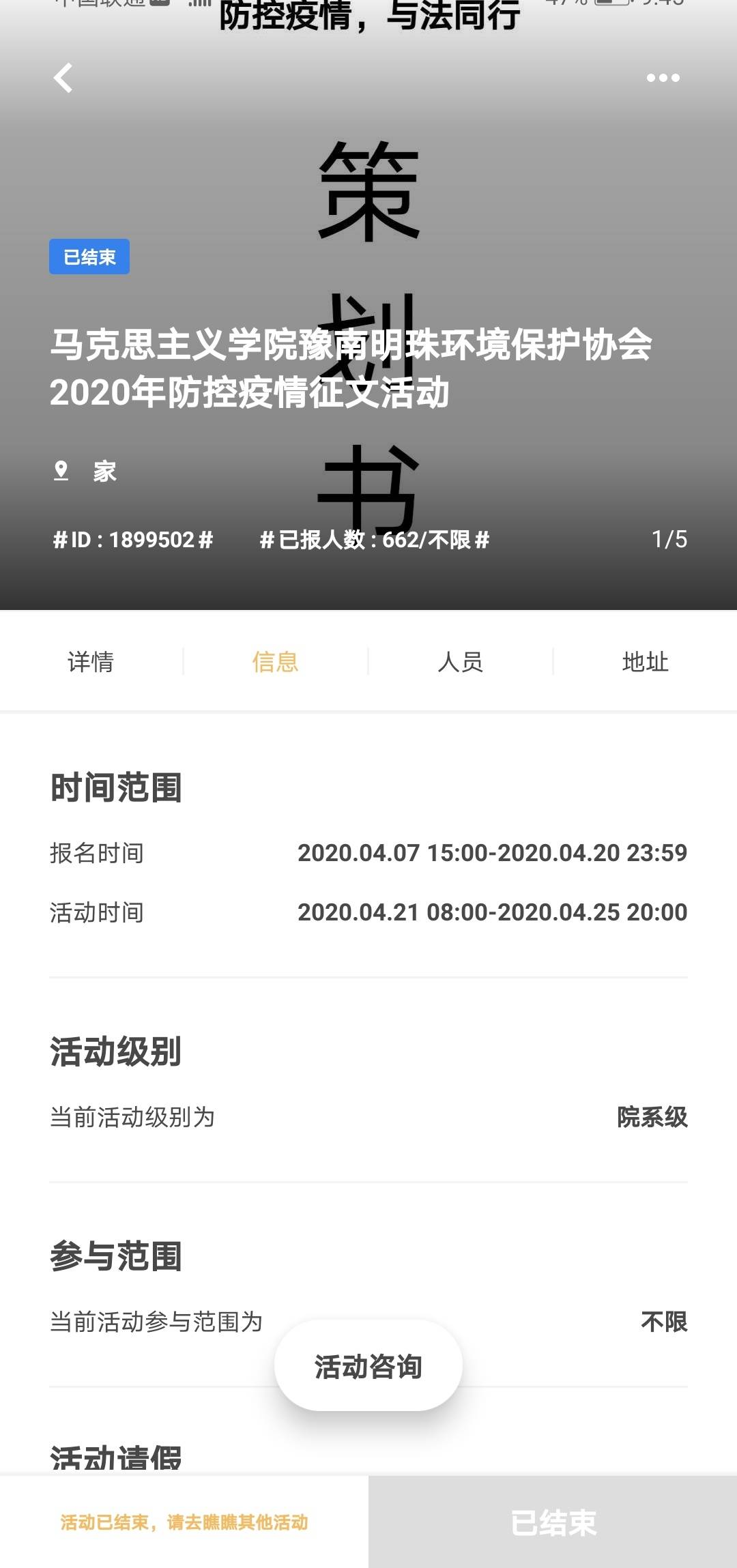 活动伊始,参赛者积极准备,多方收集资料。接着,参赛者围绕“防控疫情,与法同行”主题,以在疫情防控期间所见所闻,所思所感为素材,巧妙构思,仔细斟酌,从多角度阐释法治精神,从多方面讲述自身观点,展现出青年学子日渐增强的法治意识和坚定的环保信念,呈现了众多主题鲜明,观点正确,事例真实,选材新颖的优秀作品。最后,活动结果统计后进行公布和宣传。