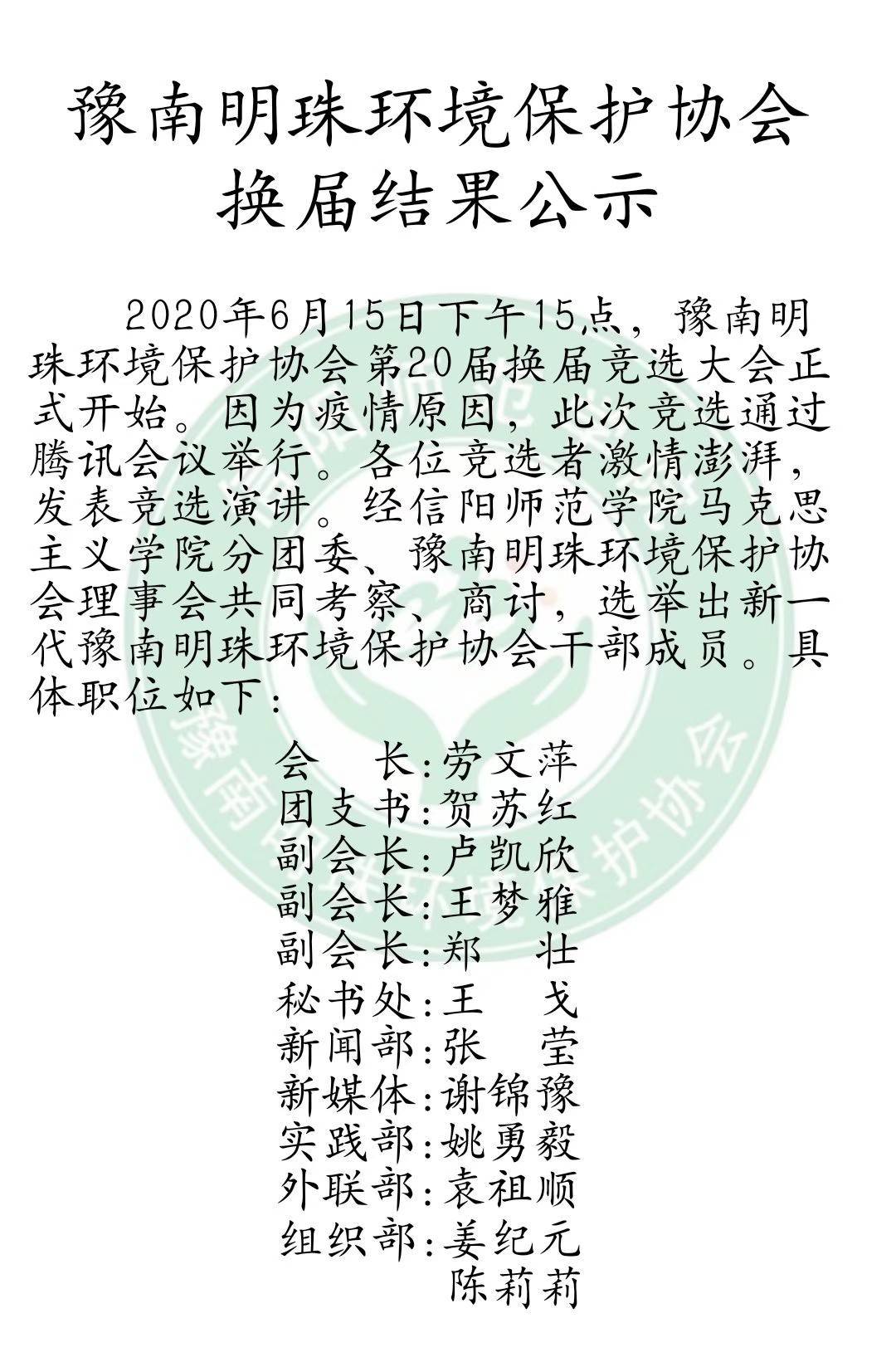 6月15日下午,豫南明珠环境保护协会换届竞选大会在线上会议平台腾讯会议顺利举行。sjb世俱杯网站分团委社团分管主席、社团会长、团支书、各部部长及19级社团成员共同参加了此次会议。会议由会长吕苗苗主持。