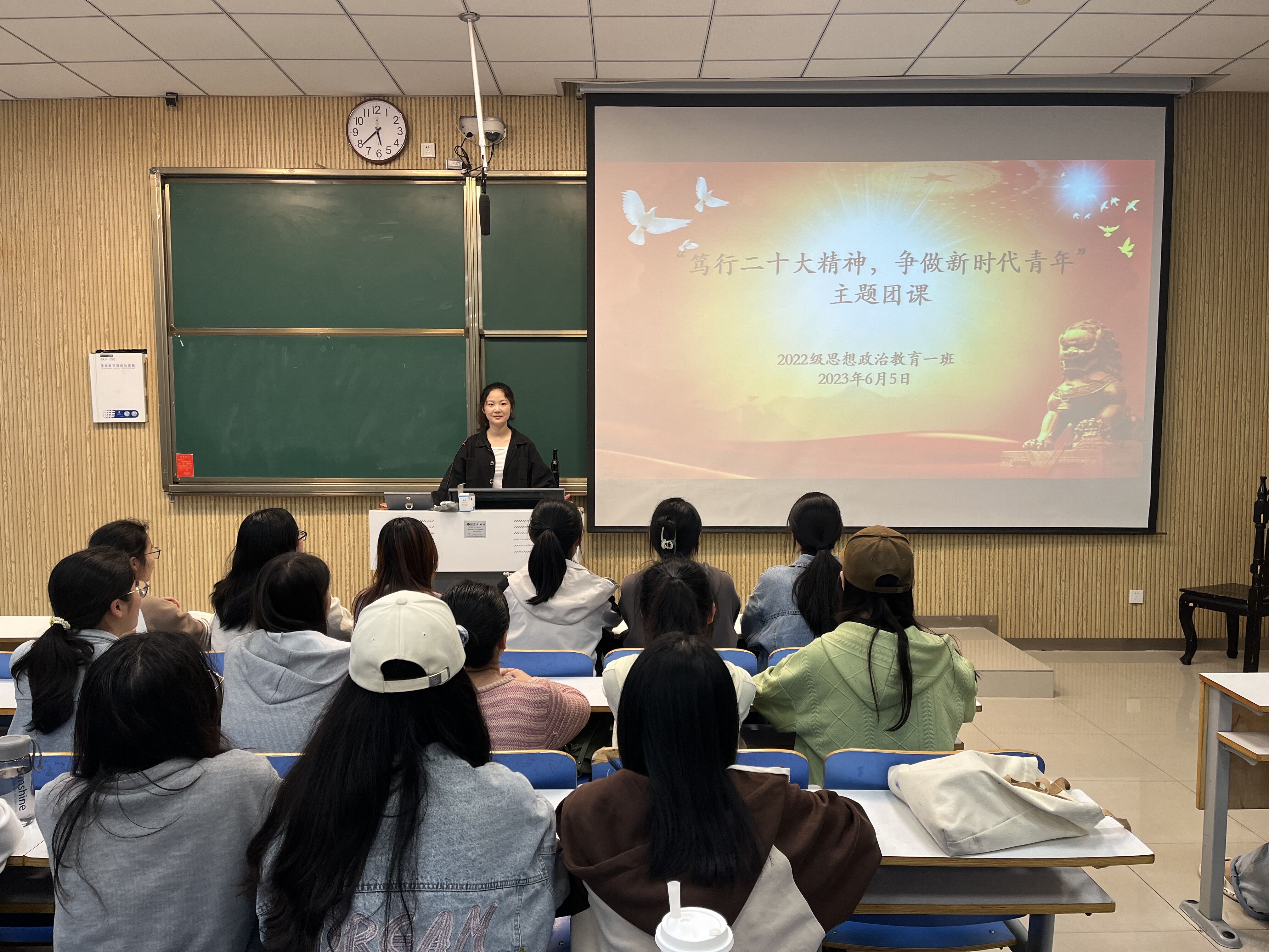 6月5日下午,sjb世俱杯网站2022级思想政治教育一班在社科楼515教室召开“笃行二十大,争做新青年”主题团课,世俱杯官网2022级思想政治教育一班全体同学共同参与本次团课,团课由团支书李佳茹主持。