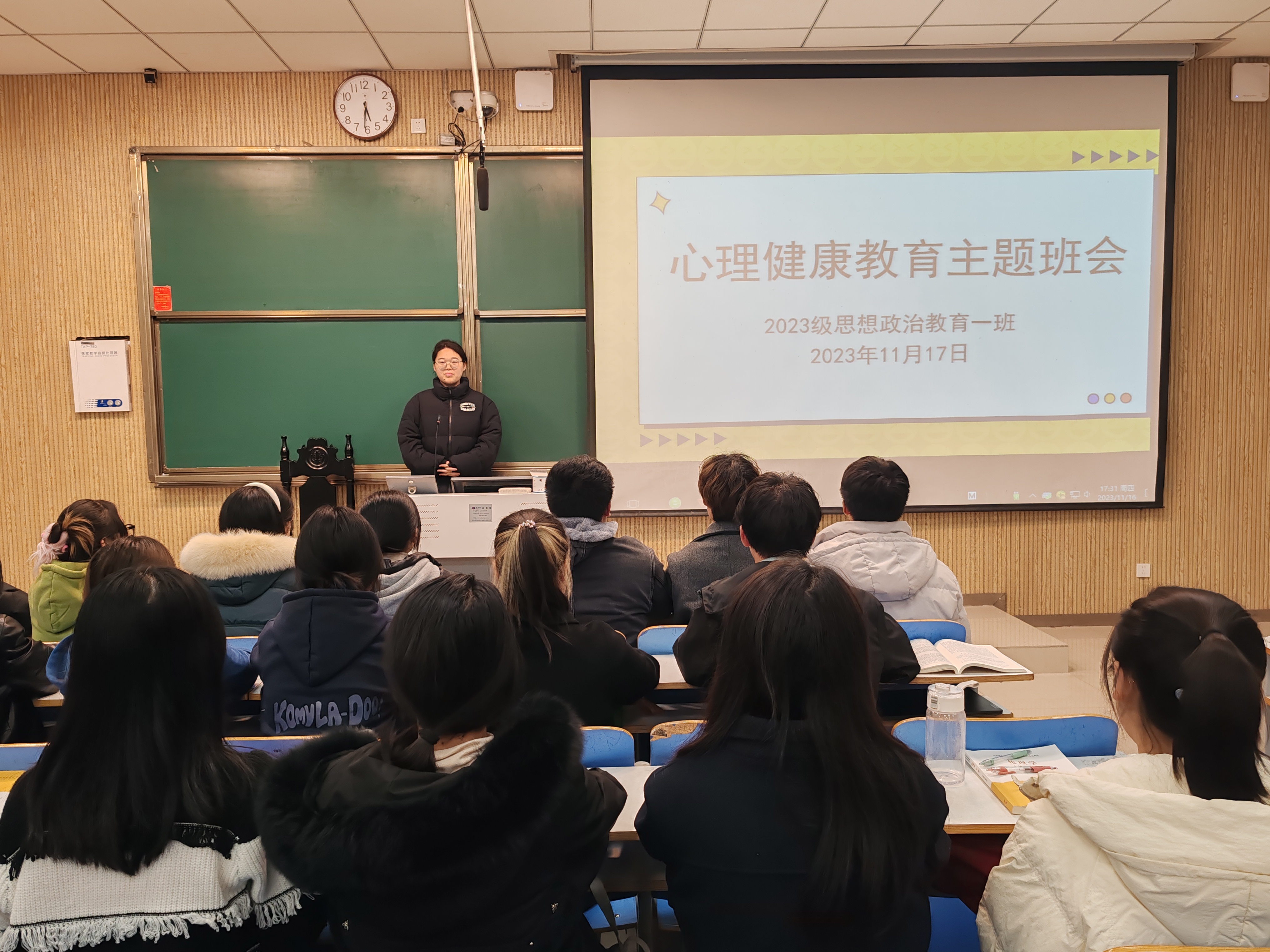 为帮助我班学子了解心理健康知识,掌握心理调适方法,增强心理素质,更好地适应学习和生活,11月17日上午,sjb世俱杯网站2023级思想政治教育一班在社科楼515教室召开心理健康教育主题班会。世俱杯官网2023级思想政治教育一班全体成员参与本次班会,班会由心理委员夏一萌主持。