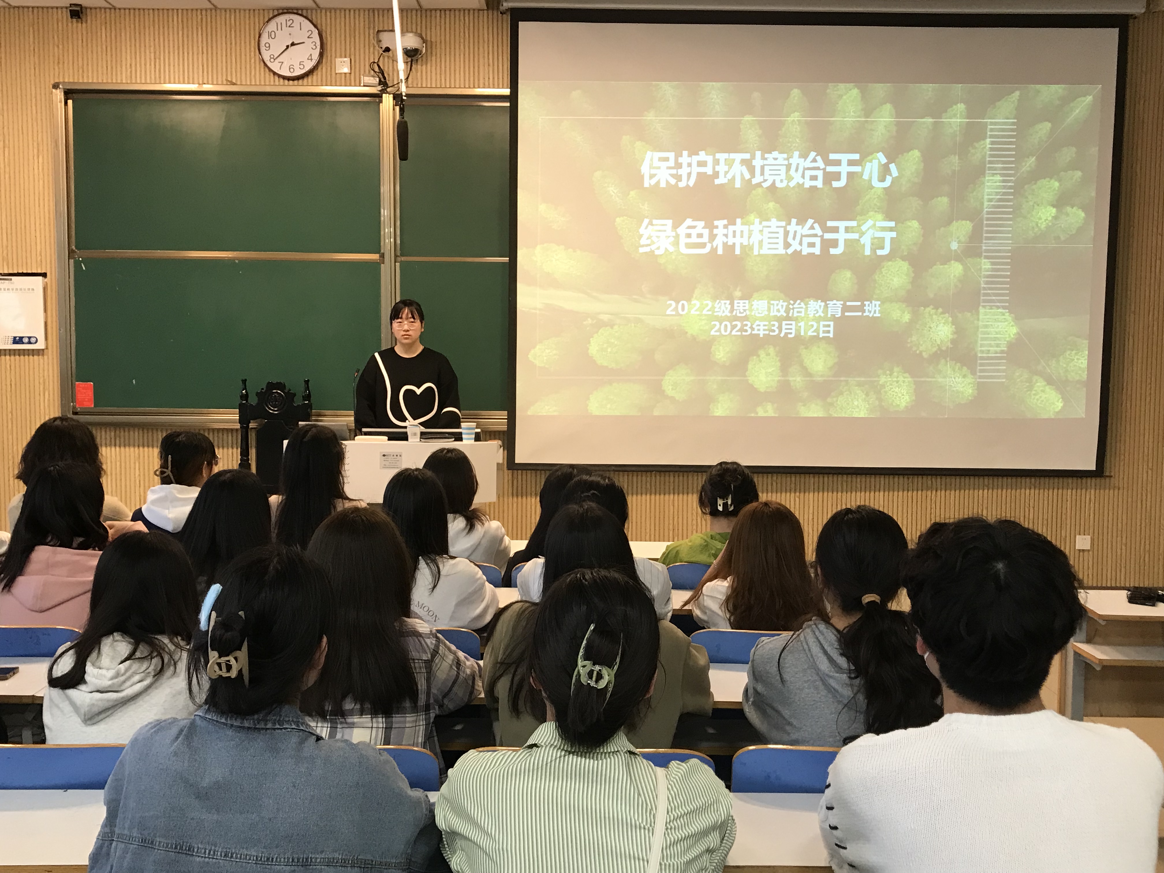 3月12日下午,sjb世俱杯网站2022级思想政治教育二班在社科楼515教室召开“保护环境始于心 绿色种植始于行”主题班会。2022级思想政治教育二班全体同学共同参加会议。班会由班长李佳音主持。