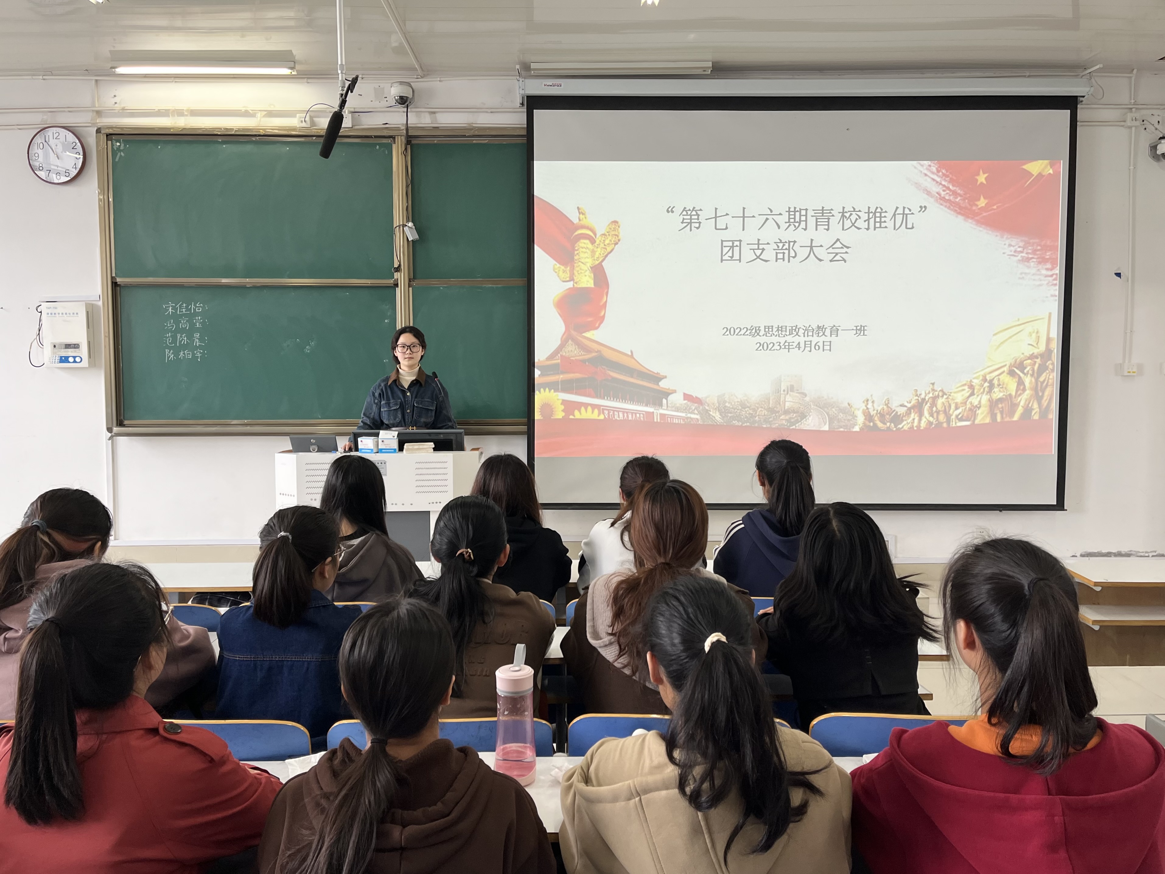 为选出第七十六期青校推优人员,进一步推进团支部工作,4月6日上午,sjb世俱杯网站2022级思想政治教育一班在社科楼514教室召开“第七十六期青校推优”团支部大会。2022级思想政治教育一班全体团员参与本次会议,会议由团支书李佳茹主持。