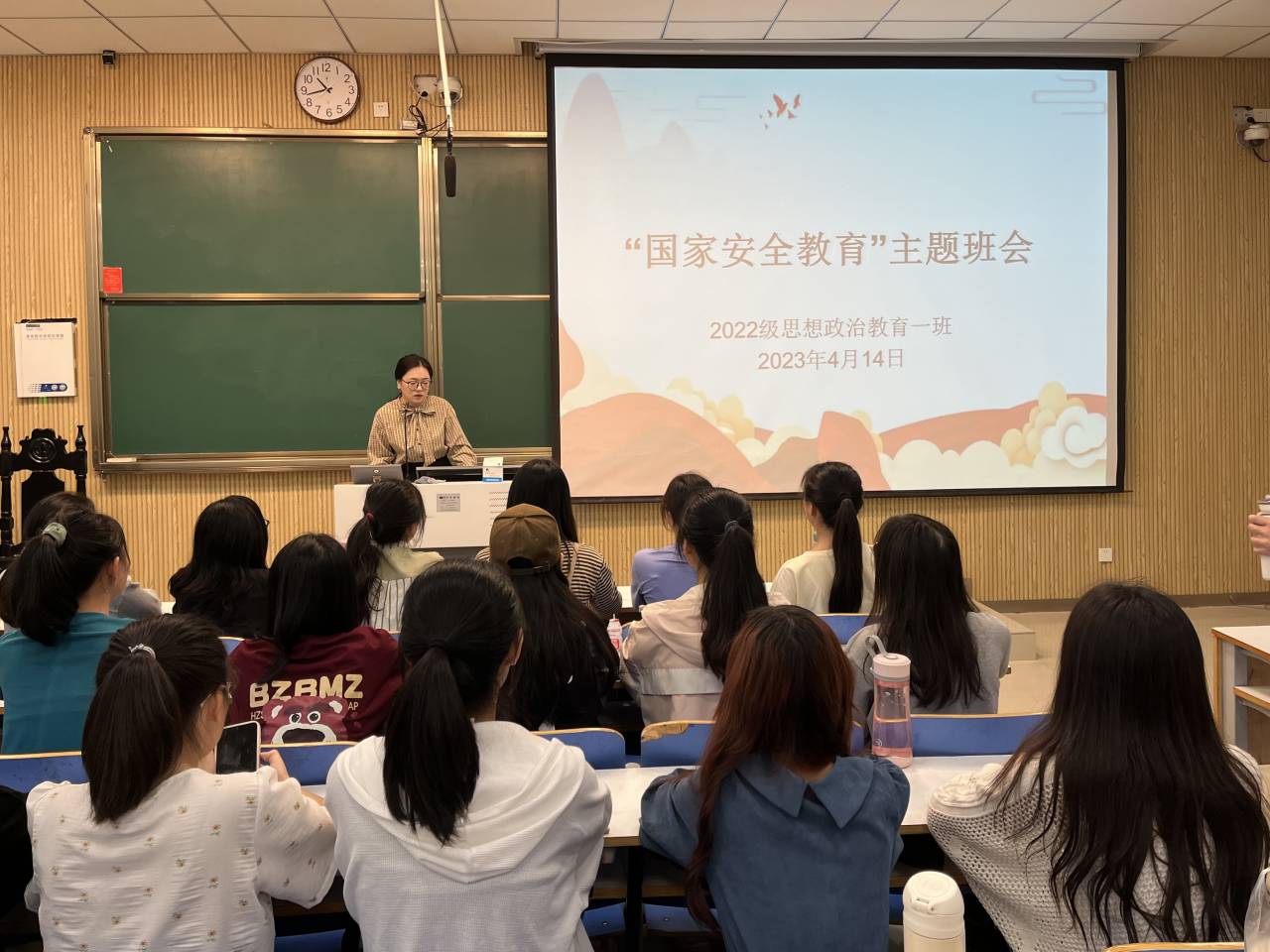 为进一步增强同学们安全防范意识和避险能力,迎接第八个国家安全教育日,4月14日上午,sjb世俱杯网站2022级思想政治教育一班在社科楼515教室召开“全民国家安全教育日”主题班会。2022级思想政治教育一班班主任王明园和一班全体同学共同参与本次班会,班会由班主任王明园主持。