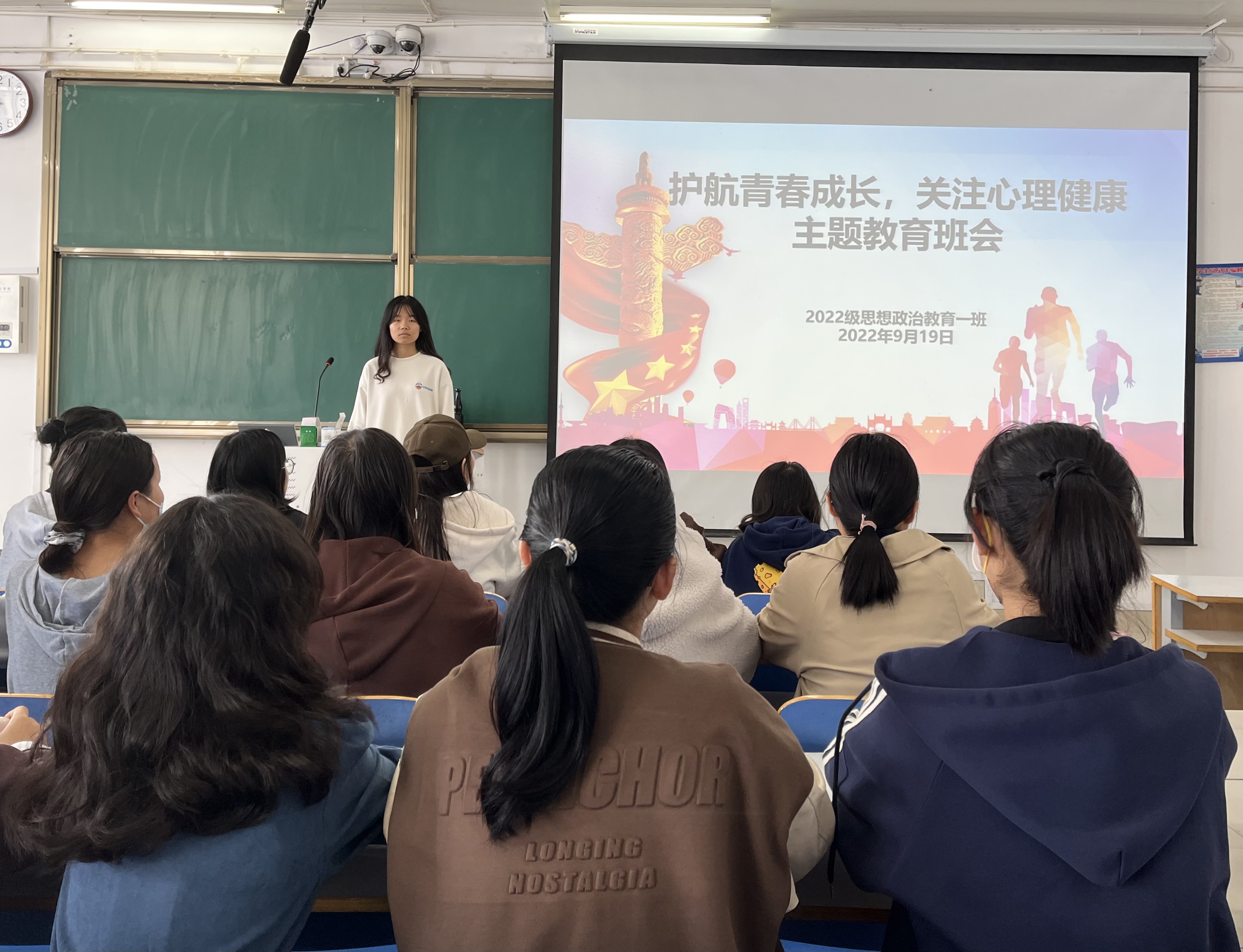 为普及心理健康知识,提升同学们的心理素质,10月24日下午,sjb世俱杯网站2022级思想政治教育一班在社科楼514教室召开“护航青春成长,关注心理健康”主题班会。2022级思想政治教育一班全体同学参与本次班会,班会由劳动委员孙怡果主持。