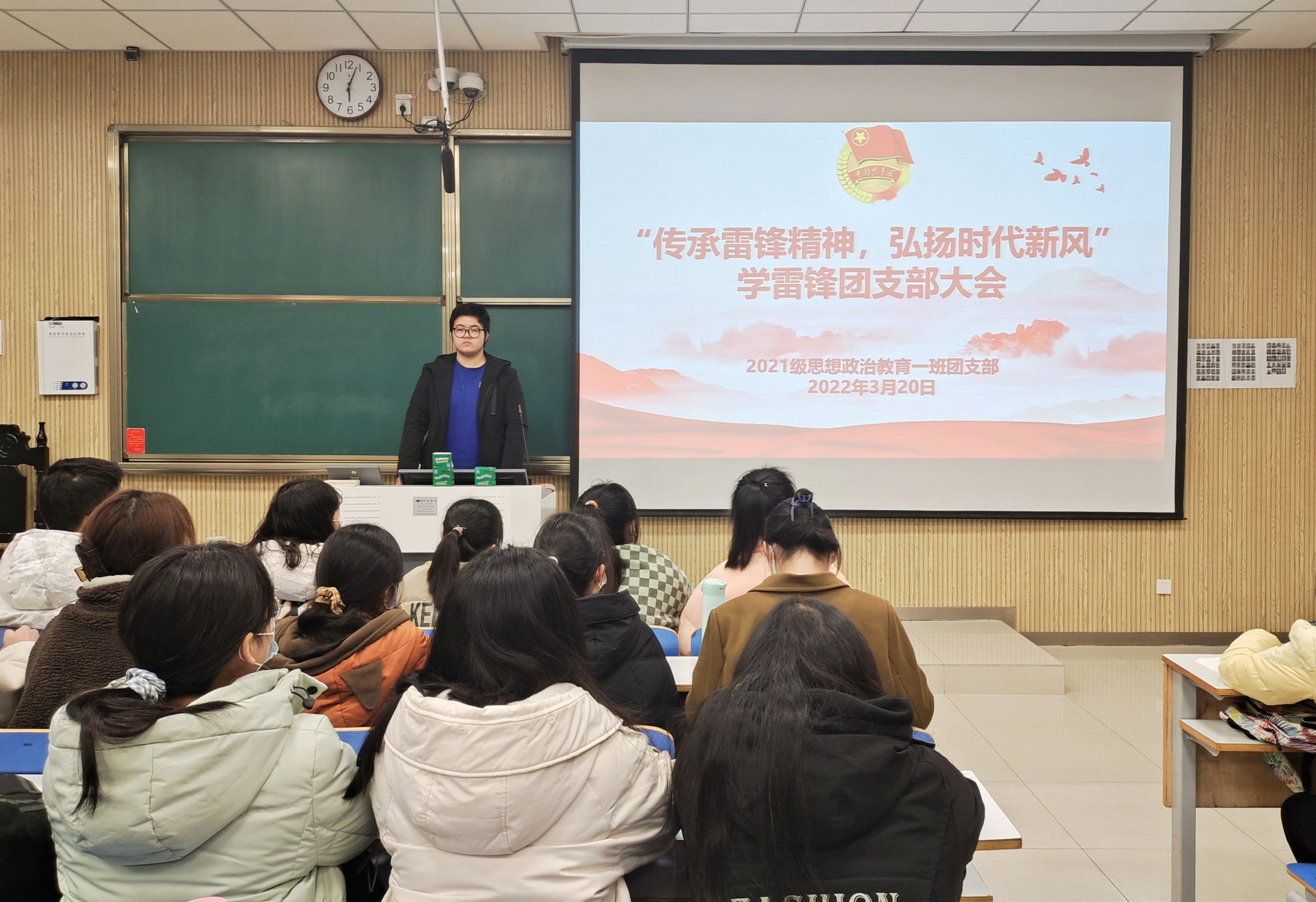 3月20日下午,sjb世俱杯网站2021级思想政治教育一班在社科楼515教室召开“传承雷锋精神,弘扬时代新风”学雷锋团支部大会。2021级思想政治教育一班全体团员共同参加了本次会议。会议由团支书戴翰林主持。