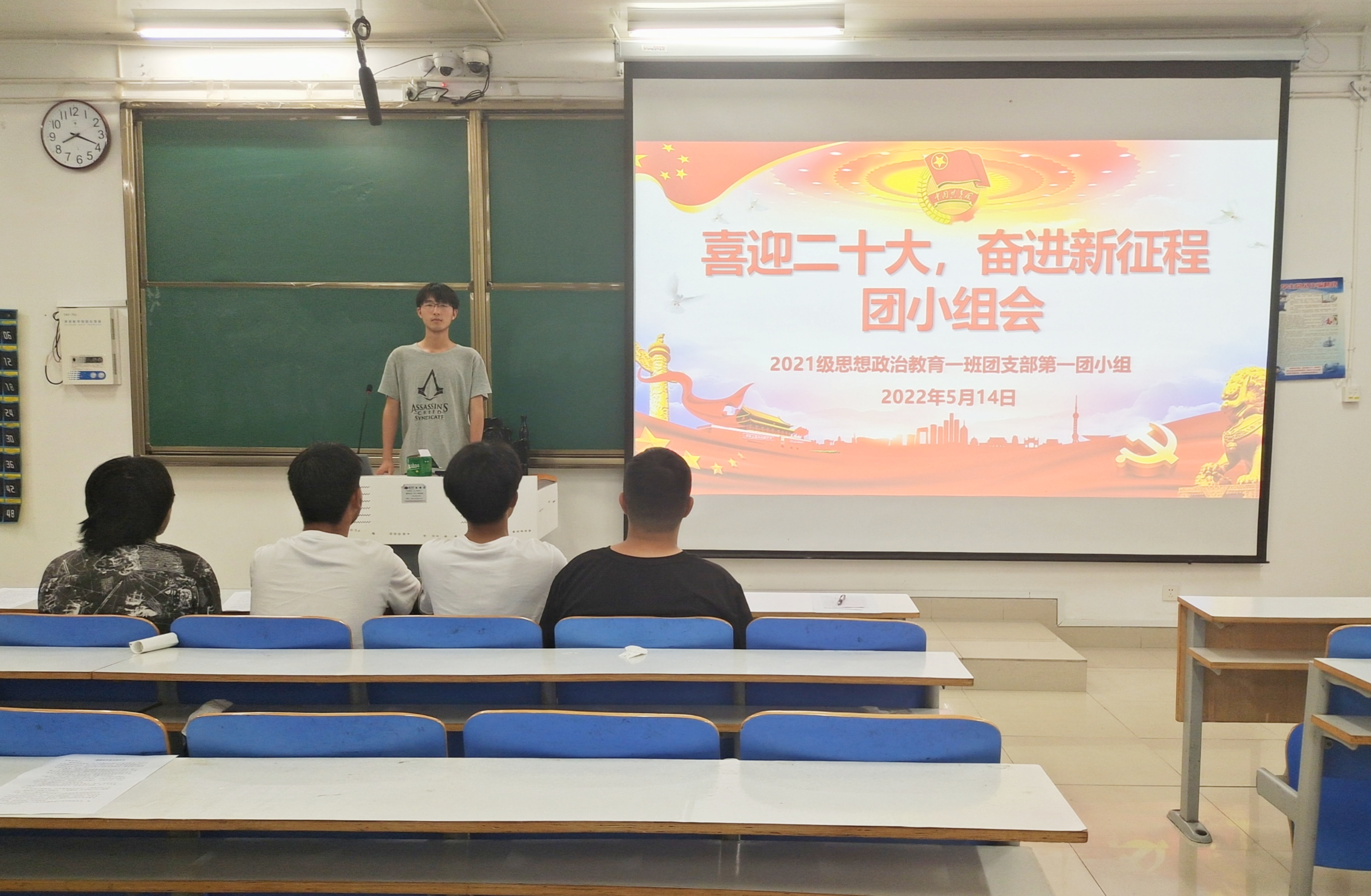 5月14日下午,sjb世俱杯网站2021级思想政治教育一班团支部第一团小组在社科楼514教室召开“喜迎二十大,奋进新征程”团小组会议。2021级思想政治教育一班团支部第一团小组全体成员共同参加了本次会议。会议由第一团小组组长孙宁主持。