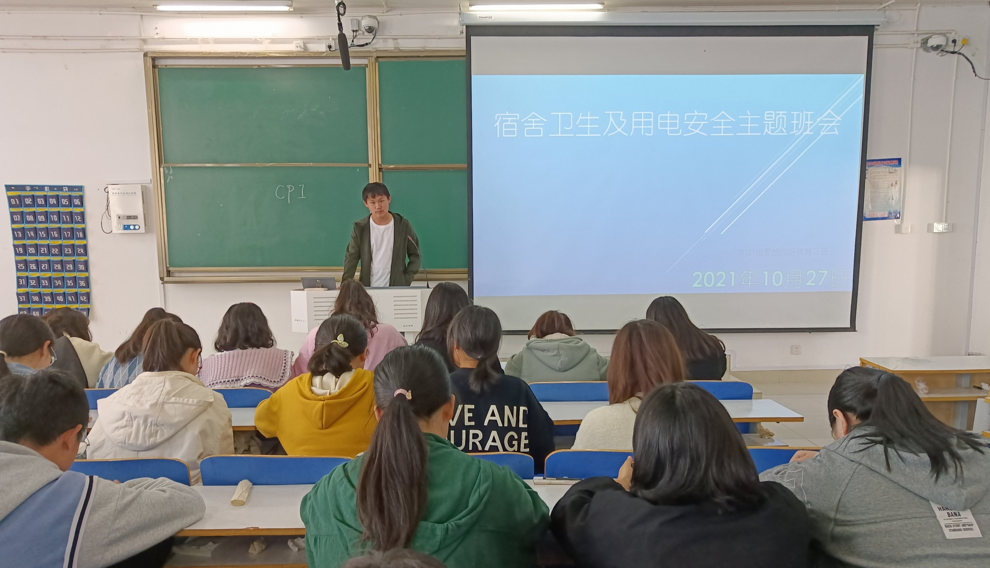 为了让同学们熟知寝室管理制度,提高安全用电意识,10月26日晚,sjb世俱杯网站2021级思想政治教育二班在社科楼514教室召开“寝室卫生及用电安全”主题班会。2021级思想政治教育二班全体成员参与此次班会。会议由团支书王婧欣和副班长任振豪主持。