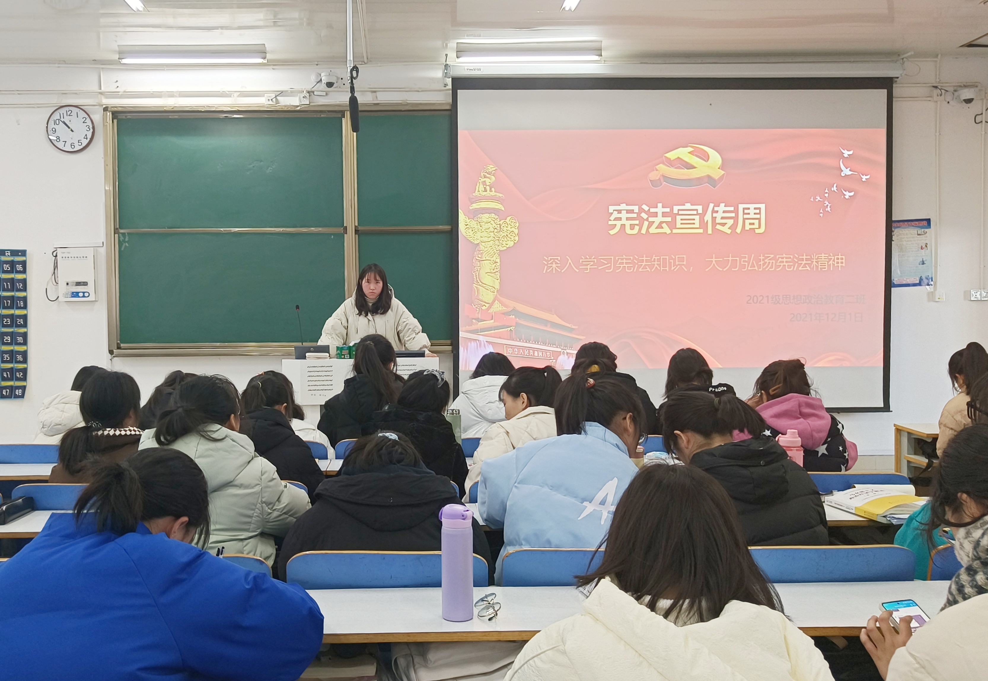 12月1日上午,sjb世俱杯网站2021级思想政治教育二班宪法宣传周主题班会在社科楼514教室召开。2021级思想政治教育二班全体同学参加此次班会,班会由团支书王婧欣主持。