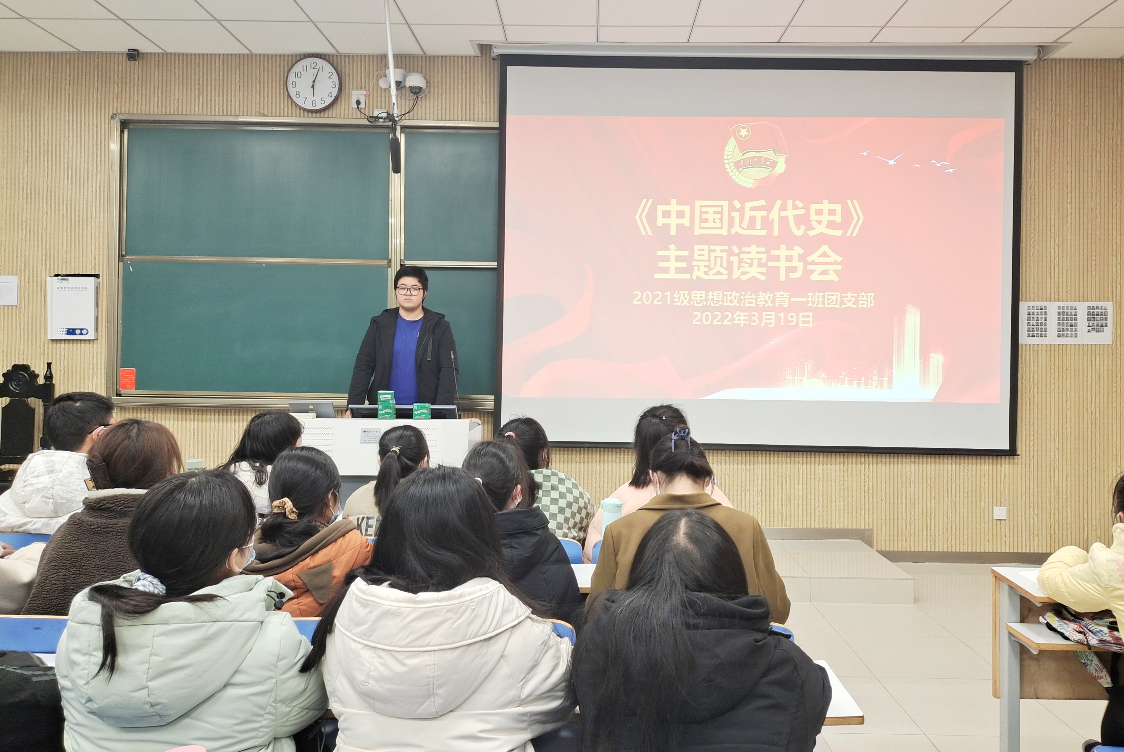 3月19日下午,sjb世俱杯网站2021级思想政治教育一班在社科515教室举办《中国近代史》主题读书会。2021级思想政治教育一班全体成员参加了本次读书会。读书会由团支书戴翰林主持。