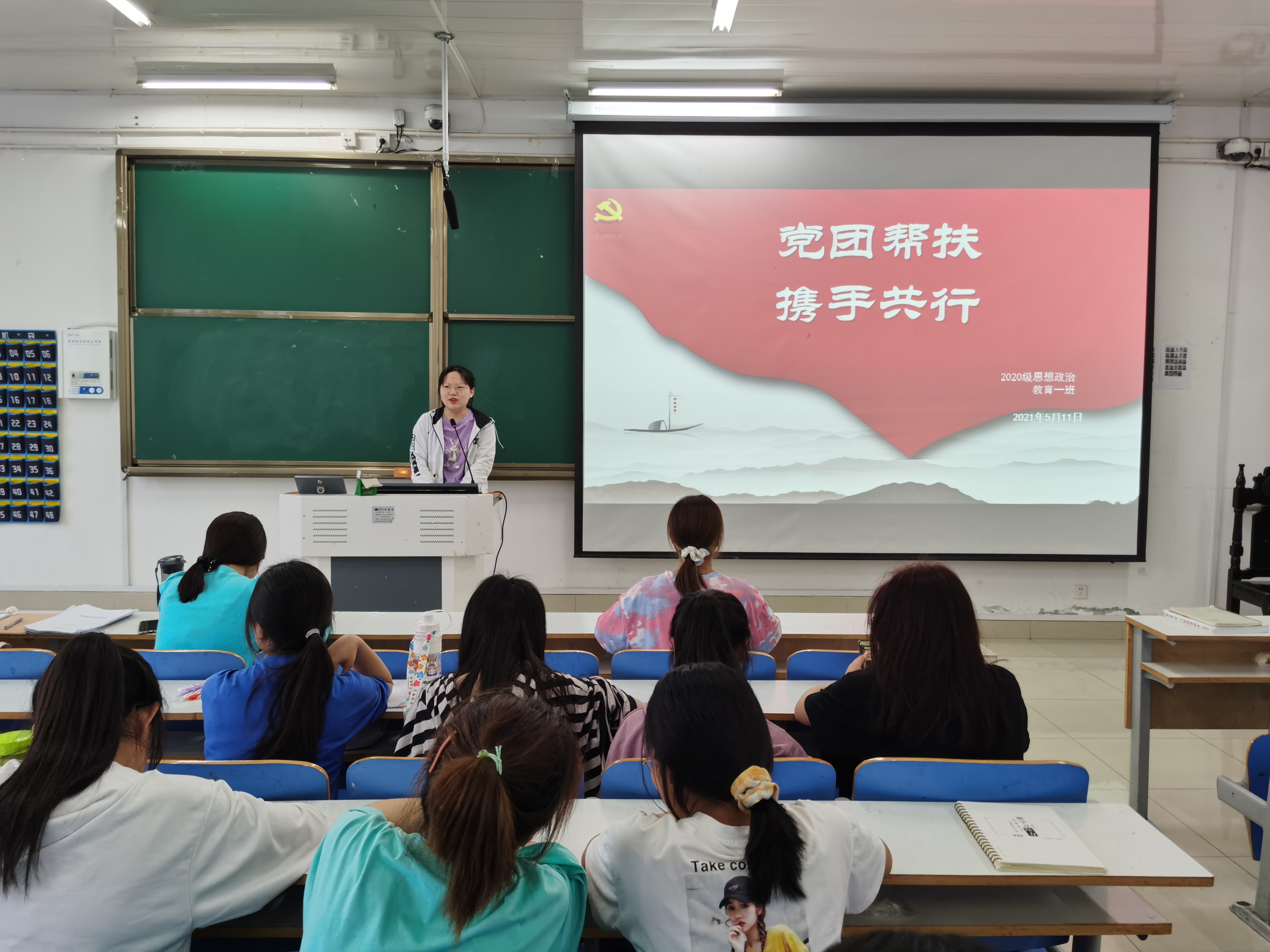 5月11日下午,sjb世俱杯网站2020级思想政治教育一班在社科楼516教室顺利开展党团帮扶会活动。2018级思想政治教育二班贾思琦与2020级思想政治教育一班全体同学参加了本次活动,活动由团支书卢茜雨主持。