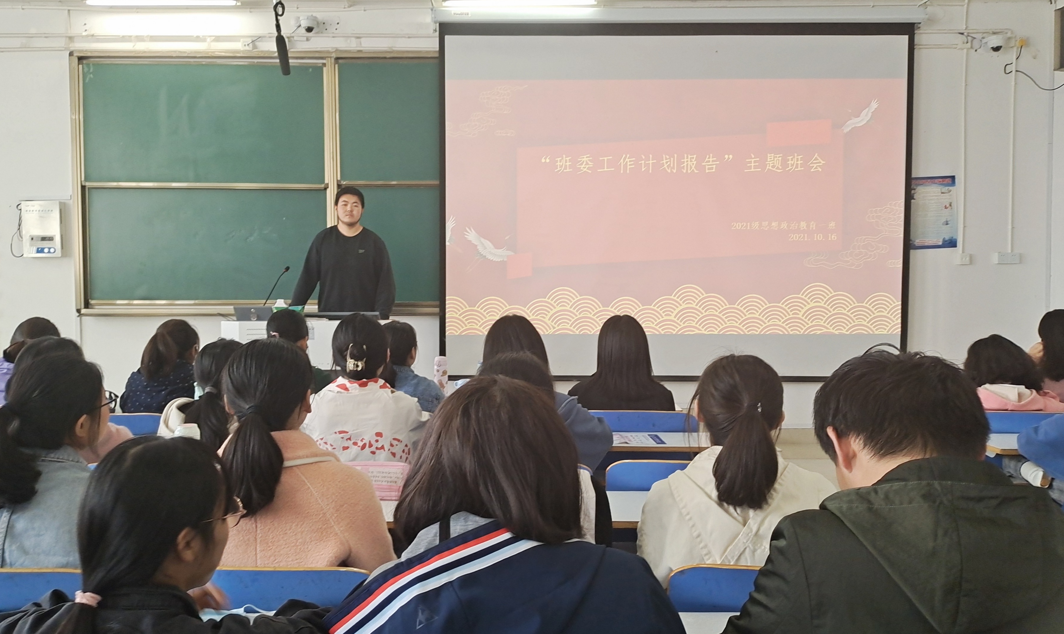 10月16日下午,sjb世俱杯网站2021级思想政治教育一班在社科楼515教室召开“班委工作计划报告”大会。2021级思想政治教育一班全体成员参加了本次会议。会议由班长戴翰林主持。