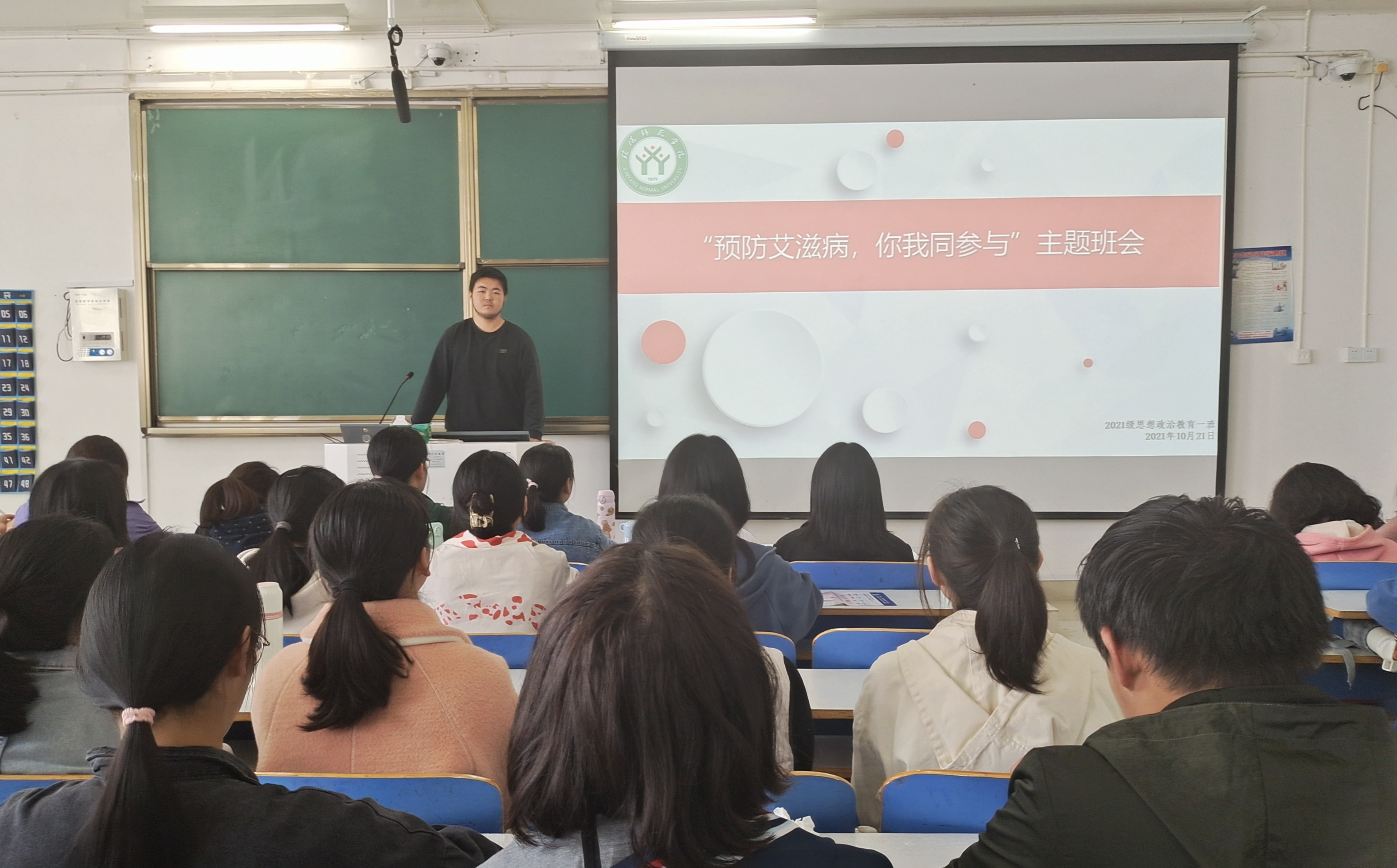 10月23日晚上,sjb世俱杯网站2021级思想政治教育一班在社科楼516教室召开“预防艾滋病,你我同参与”主题班会。2021级思想政治教育一班全体成员参加了本次班会。班会由团支书戴翰林主持。
