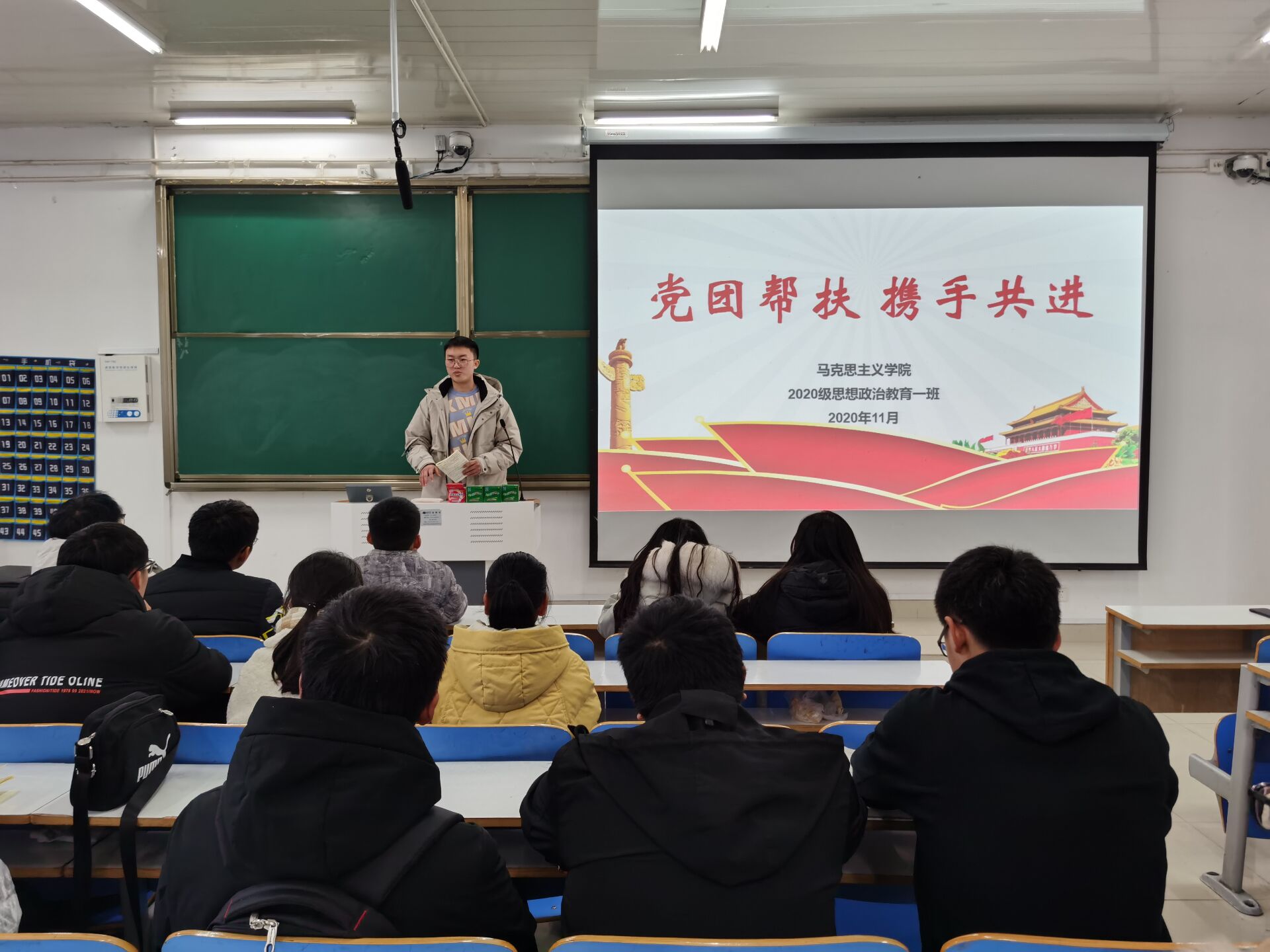 12月1日上午,sjb世俱杯网站2020级思想政治教育一班在社科楼514教室开展了党团帮扶会活动。2017级思想政治教育一班王雅纯、2018级思想政治教育一班邢子豪以及2020级思想政治教育一班全体同学参加了本次活动,会议由团支书卢茜雨主持。