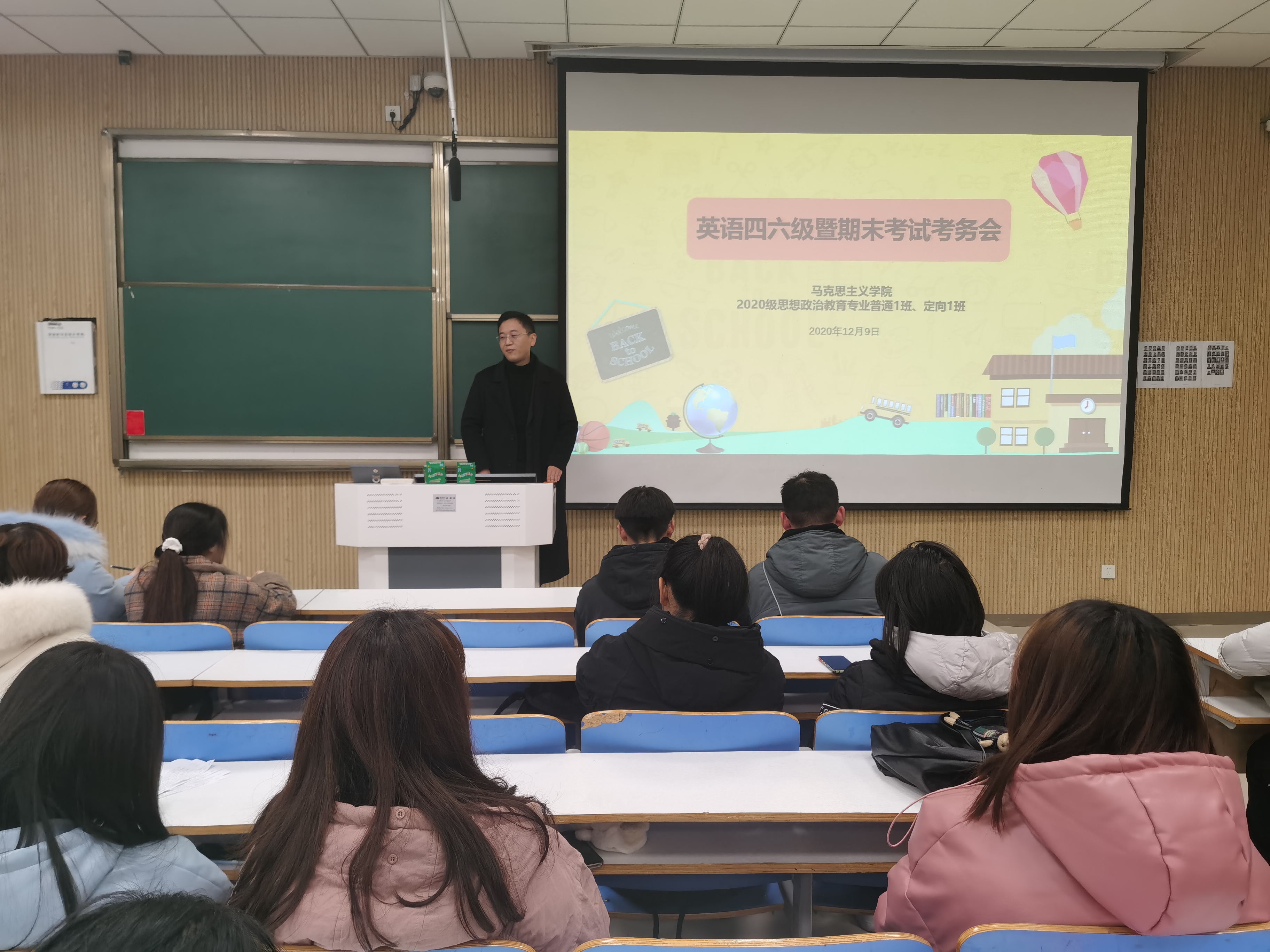 12月9日下午,sjb世俱杯网站2020级思想政治教育一班、定向一班在社科楼515教室顺利开展期末考试班级考务会,2020级思想政治教育一班、定向一班全体学生聆听了此次班会,班会由辅导员曹栋主持。
