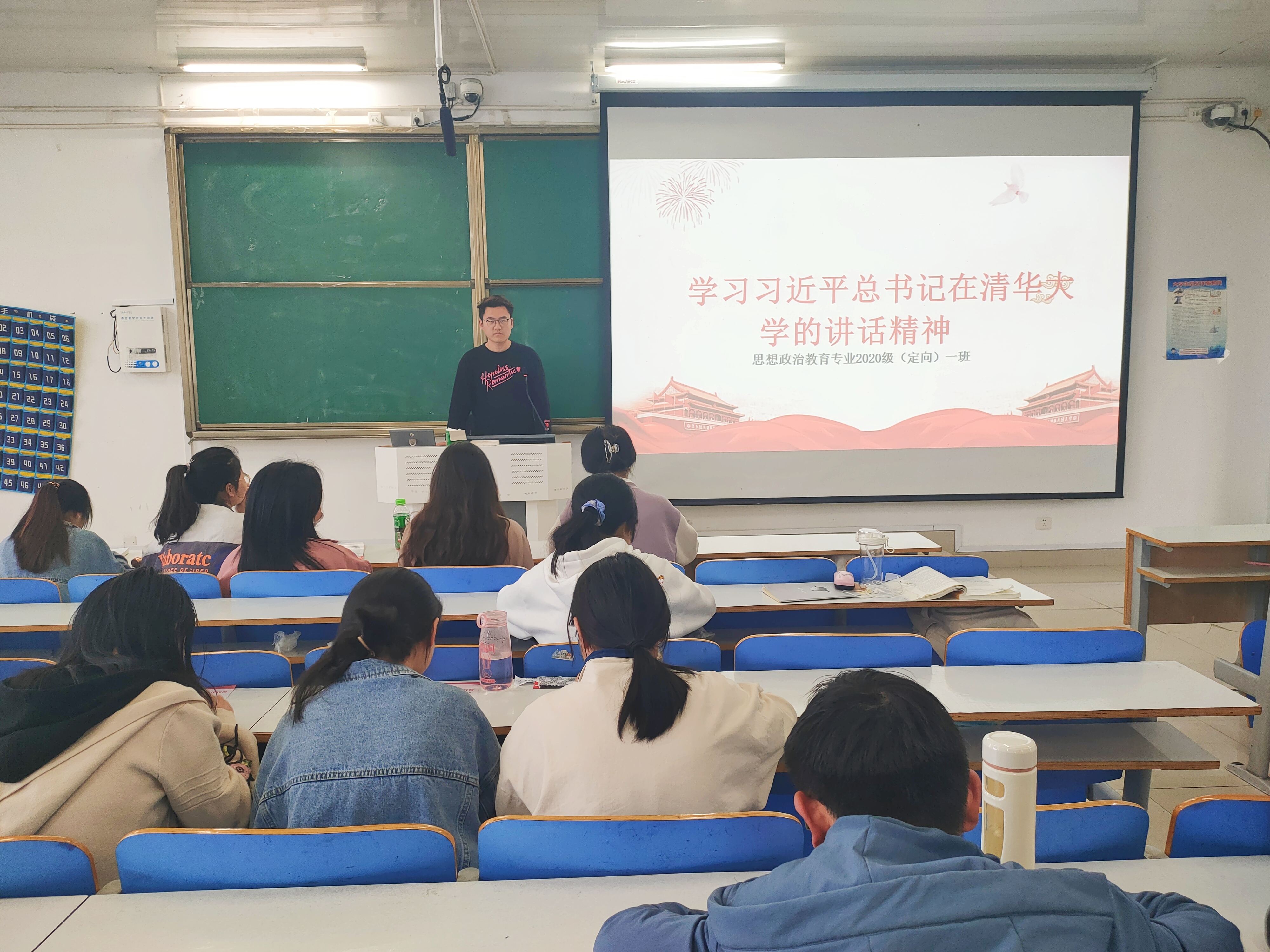 4月26日下午,sjb世俱杯网站思想政治教育(定向)一班在社科楼514教室顺利举办“学习习总书记在清华大学考察的讲话精神”主题班会。sjb世俱杯网站思想政治教育(定向)一班全体学生聆听了此次班会。班会由团支书朱紫峰主持。