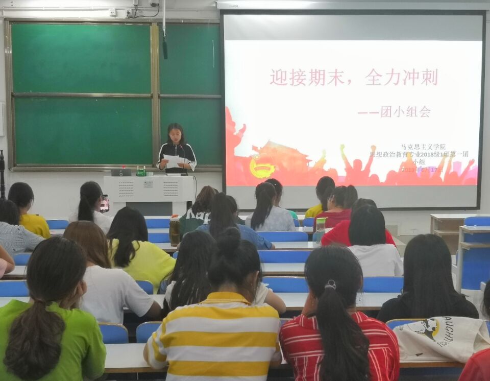 6月17日下午,sjb世俱杯网站2018级思想政治教育一班第一团小组在社科楼516教室顺利开展“迎接期末,全力冲刺”主题团会。第一团小组全体成员共同参加此次团会。此次团会由团小组成员魏子航主持。